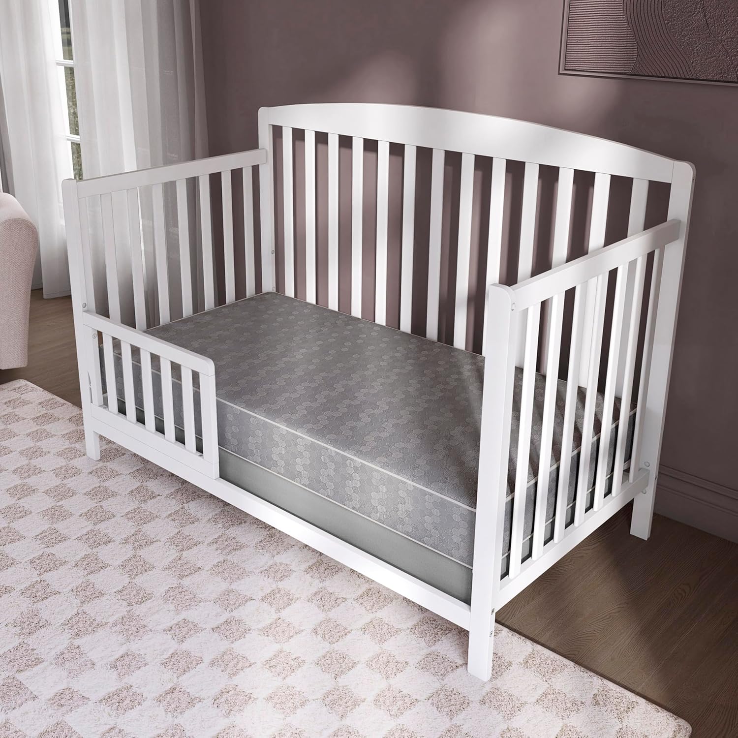 KEY SPECS: Fit all standard size cribs and toddler beds for years of use. Dimension- 52” L X 27” W X 6” W inches, Weighs 10 pounds. Comes with a 10- Year Limited Manufacturer Warranty.