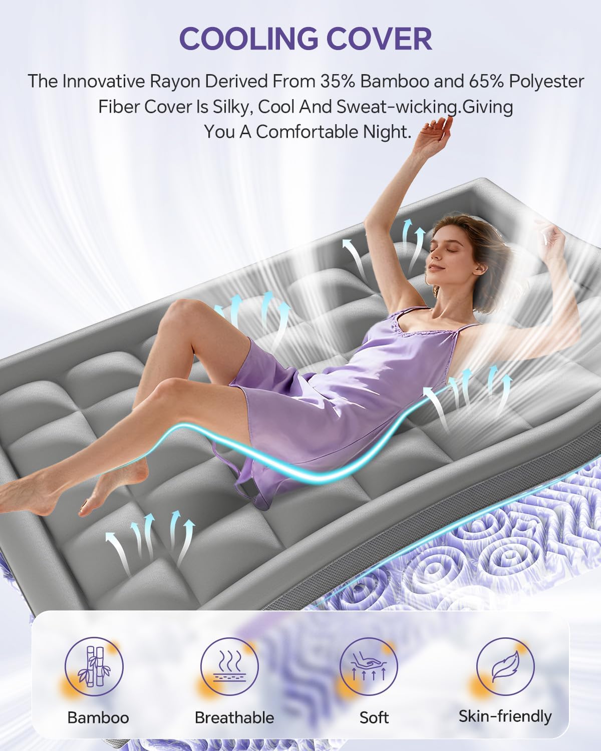 Cooling & Breathable: The ultra-soft fabric and premium gel-infused memory foam create a cooling and breathable sleep environment without noise or movement.
