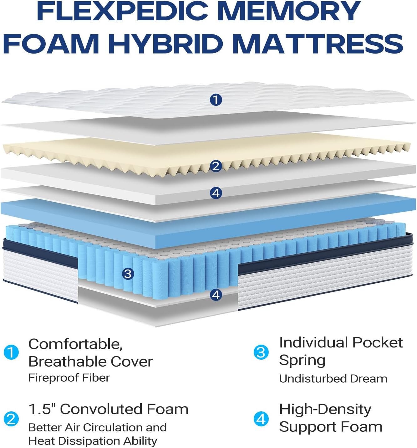1 Ultra Soft Cover 2 Convoluted Foam 3 HD Support Foam 4 Pocket Springs