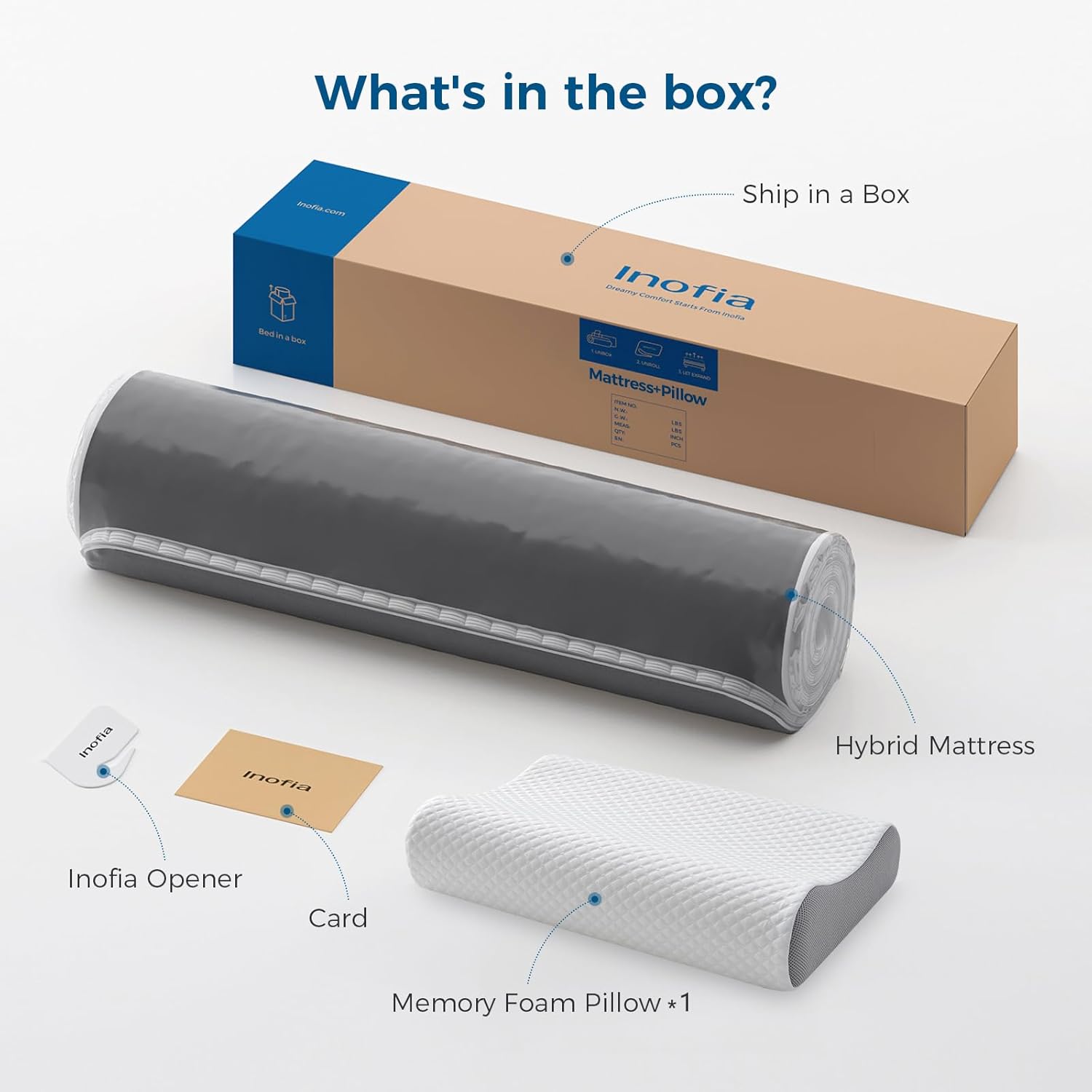 ● 101 Nights Trial — Each Inofia twin mattress is shipped compressed in an easy-to-handle box and comes with 101 nights sleep trial and 10-year limited guaranty. Up to 72 hours is recommended for your new inofia mattress to regain its original shape.