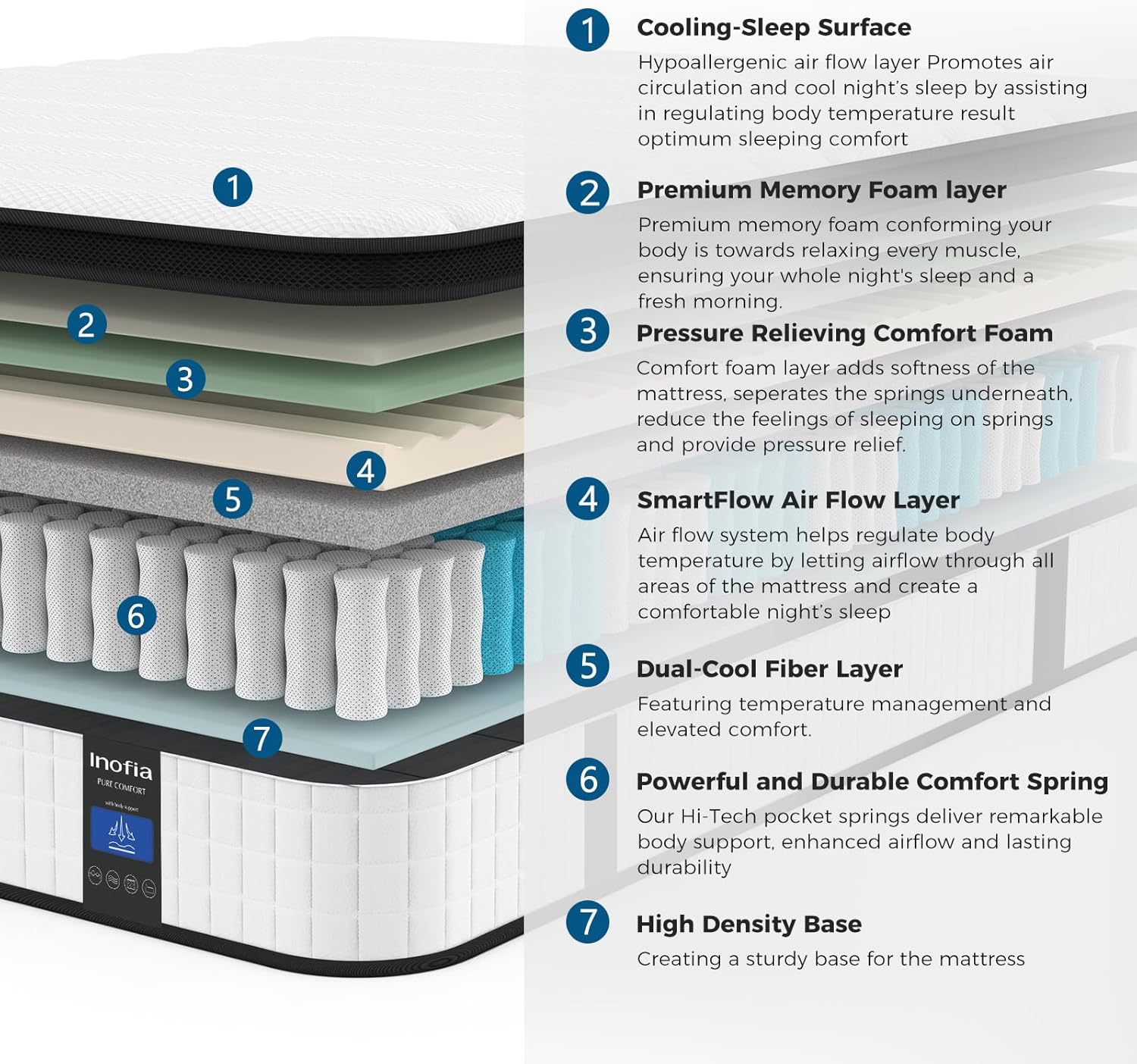 ●Impressive & Comfortable Sleeping Experience–The Inofia mattress combines multiple layers of memory foam with individually wrapped pocket springs, giving this inofia twin mattress the best of both worlds. It has the encasement and comfort of a memory foam mattress and the support and breathability of a pocketed spring. Offering you an incredible sleeping experience like no other.