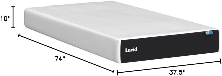 The Lucid 10 Inch Gel Memory Foam Mattress, Twin size is the perfect choice for side, stomach, and back sleepers looking for a great new mattress for their Twin bed frame, providing a medium feel. 3 inches of plush gel-infused memory foam offers plenty of comfort while also keeping you cooler than traditional memory foam. The plush top layer of foam is also ventilated to increase airflow and breathability. 5.5 inches of dense foam infused with bamboo charcoal, act as a stable support. An additional 1.5 inches of transition foam is added for proper body alignment. Plus, the memory foam infused with bamboo charcoal helps keep your mattress smelling fresh thanks to its natural clean properties.