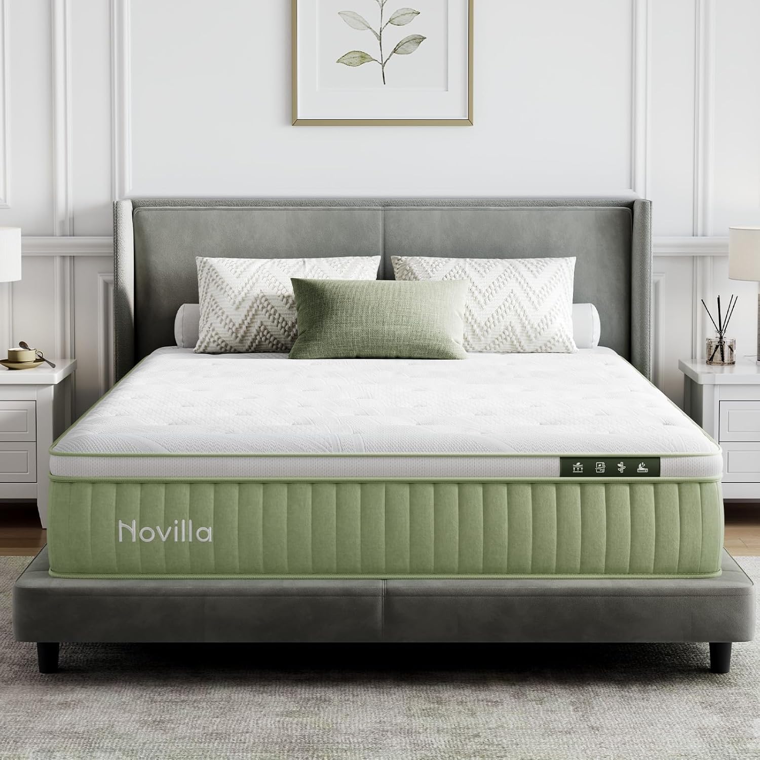 【Full Mattress in a Box for Hassle-Free Setup】The Novilla mattress arrives compressed in a compact box, thanks to vacuum-sealing technology, making delivery and setup effortless. Designed for convenience, it easily fits through doorways and can be carried to any room without difficulty. The full size hybrid mattress 12 inch is compatible with all standard bed frames and simply requires 72 hours to fully expand to its original shape for optimal comfort level.