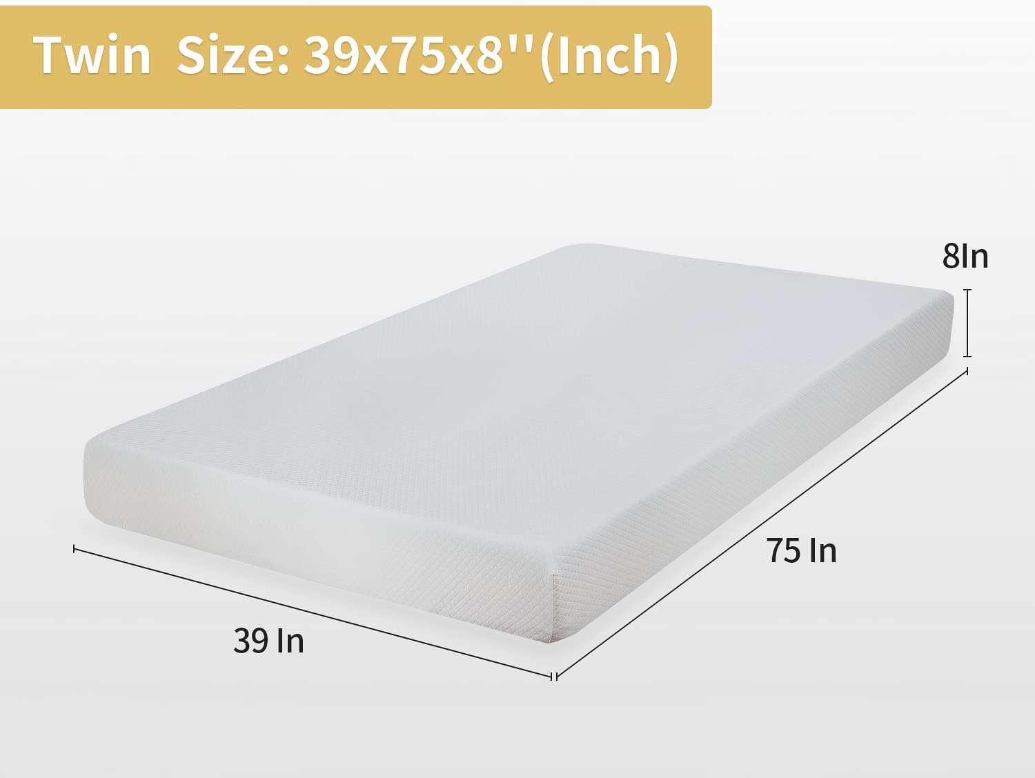 Our twin size medium/hard two layer cooling gel memory foam mattress provides support and comfort for a good night sleep.