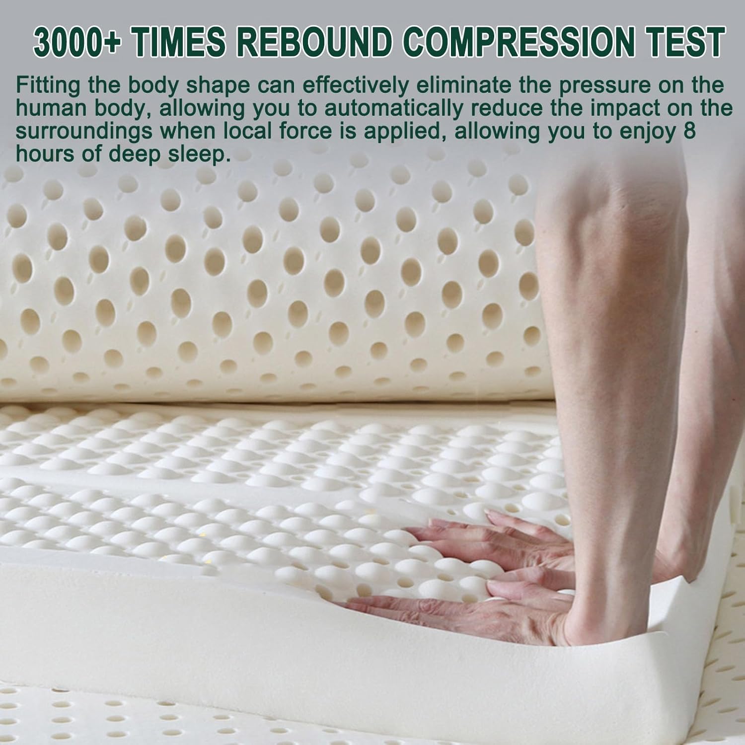 [Comfortable & Breathable]:The top layer of natural latex mattress has thousands of honeycomb pores, which can hold more air than other fibers. These holes allow excess heat to escape from the body. Natural latex mattresses can promote natural ventilation, provide the best natural air-conditioning system, and keep the air in the mattress fresh and healthy. Available all year round.
