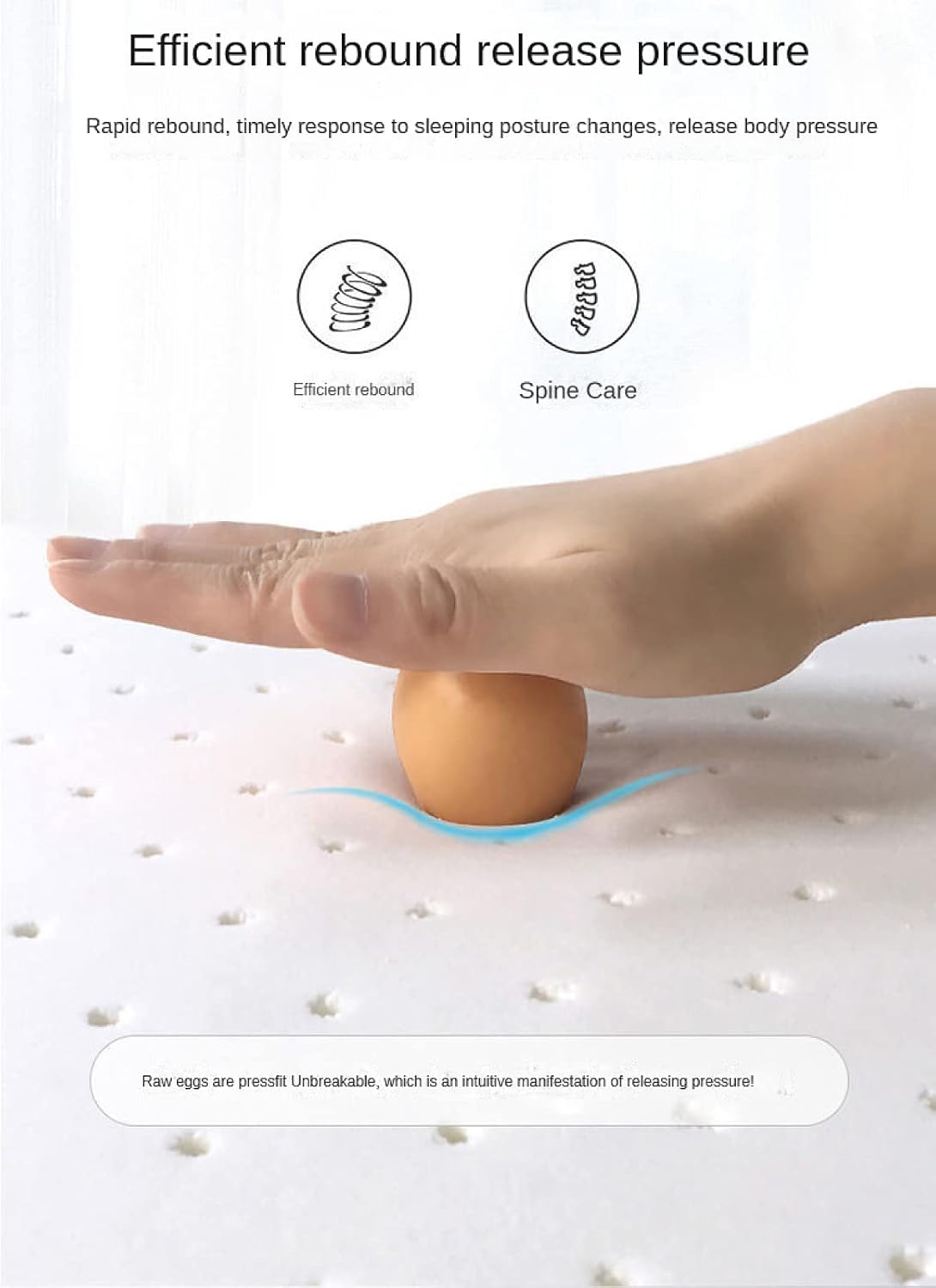Dense honeycomb convection ventilation holes are scientifically arranged. The ventilation design makes sleep cooler. Latex has a natural airflow that prevents the accumulation of moisture and heat.