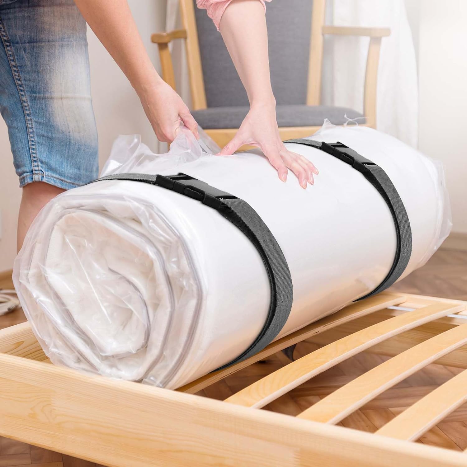 Simplifying Your Move: moving homes can be stressful, especially when dealing with bulky items like mattresses; These mattress straps make it easy to compactly roll up your mattress and easily move it to your desired location or store it for later use