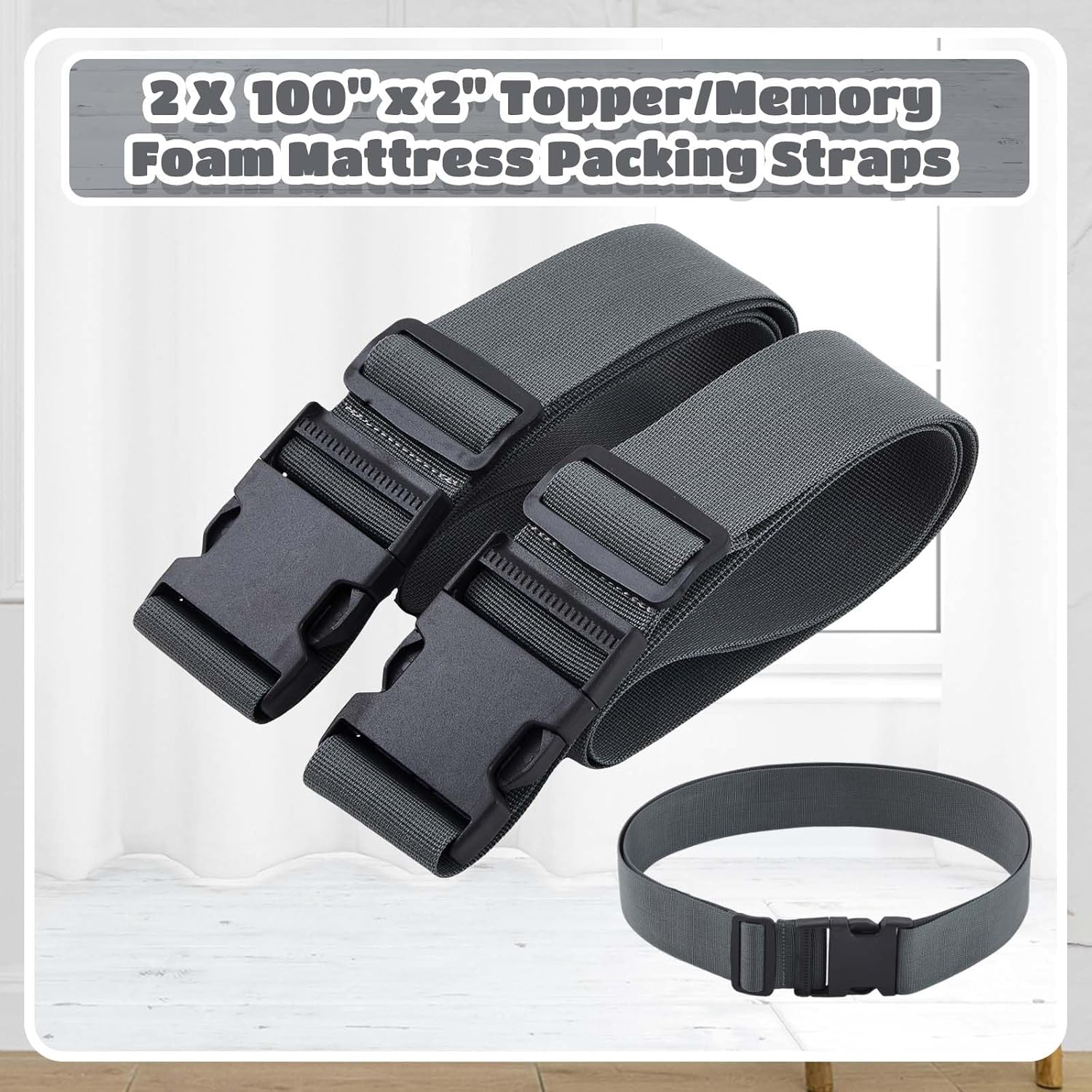 2 Pcs 100″ x 2″ Mattress Topper Straps Adjustable Memory Foam Packing Straps with Buckles for Home Mattress Moving or Storage, Dark Grey