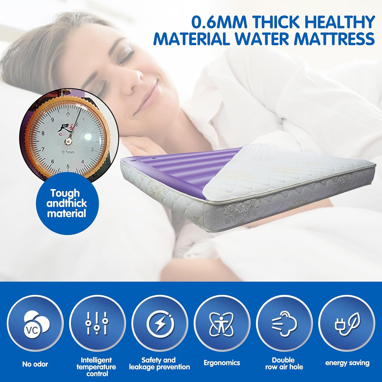 【Strong Weight Capacity】: This mattress has a weight capacity of 2200 pounds, ergonomic design, soft and durable, it can provide enough support for your body. The thermostat waterbed is portable and foldable, and can be easily stored when not in use, it will not take up too much space in your home.