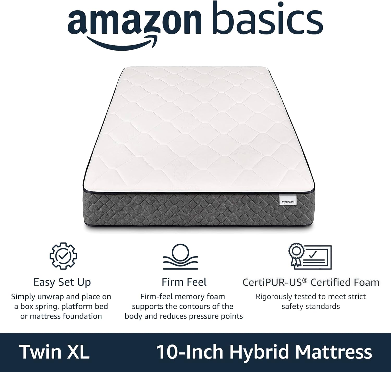 6 reviews for Amazon Basics Infused Gel Memory Foam Mattress, 12 inch Hybrid, Cushion Firm, Cool Touch, CertiPUR-US® Certified Foam, Twin XL, White & Gray