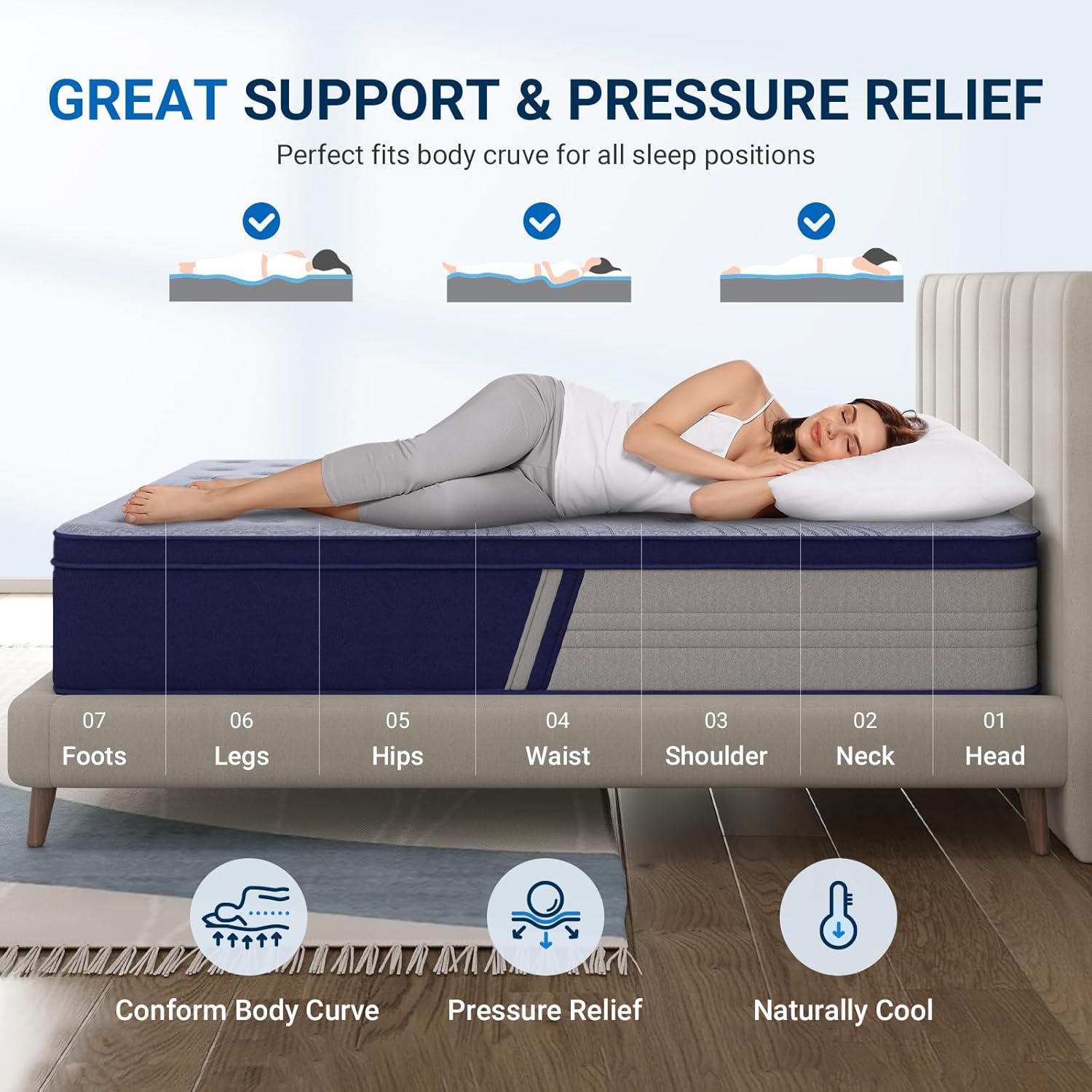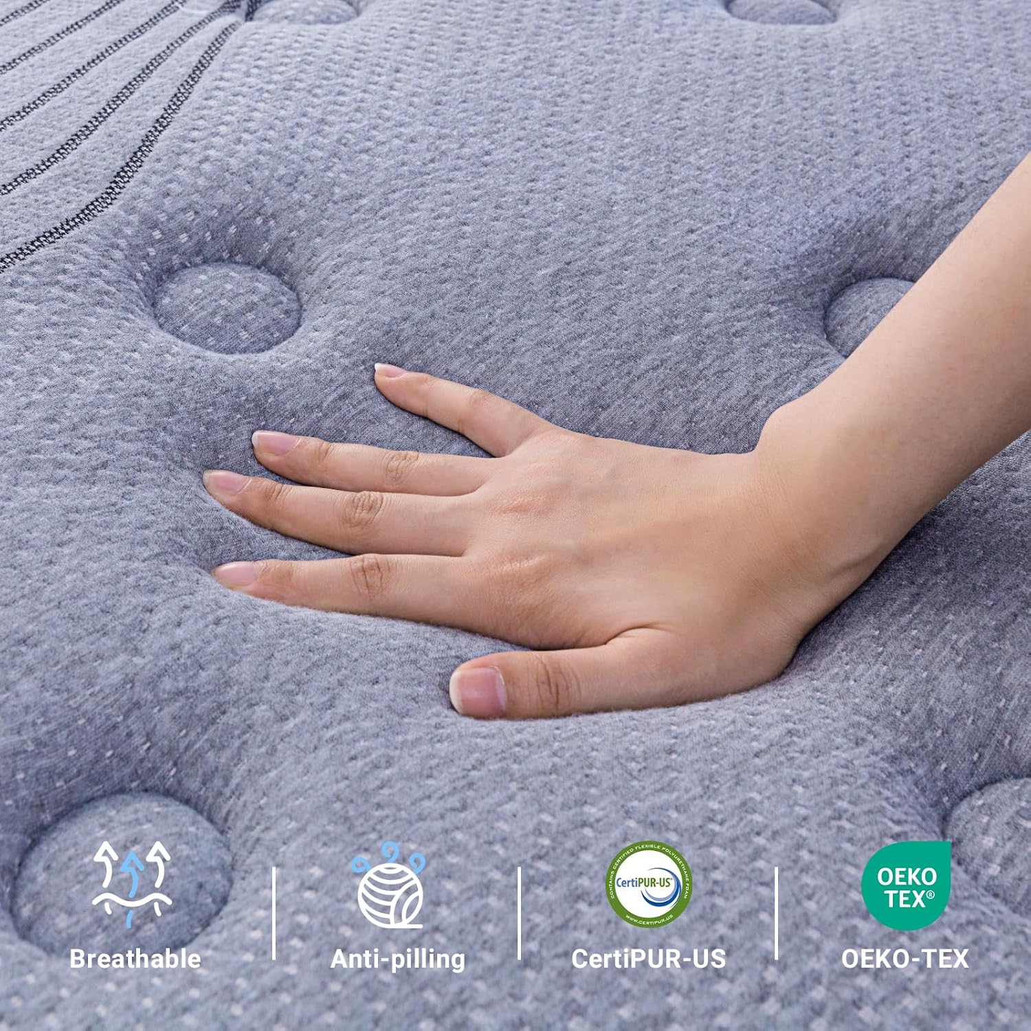 SAY GOODBYE TO BACK PAIN: Hybrid mattress queen is an ideal option for all sleepers! The pocket spring mattress has excellent shock absorption and elasticity, can balance your body weight. It relieves pressure on your shoulders, hips and lower back for the ultimate stress relief. Plus, this queen-size mattress is suitable for all sleeping positions, so you don’t worry about changing your sleeping position affecting the quality of your sleep quality.