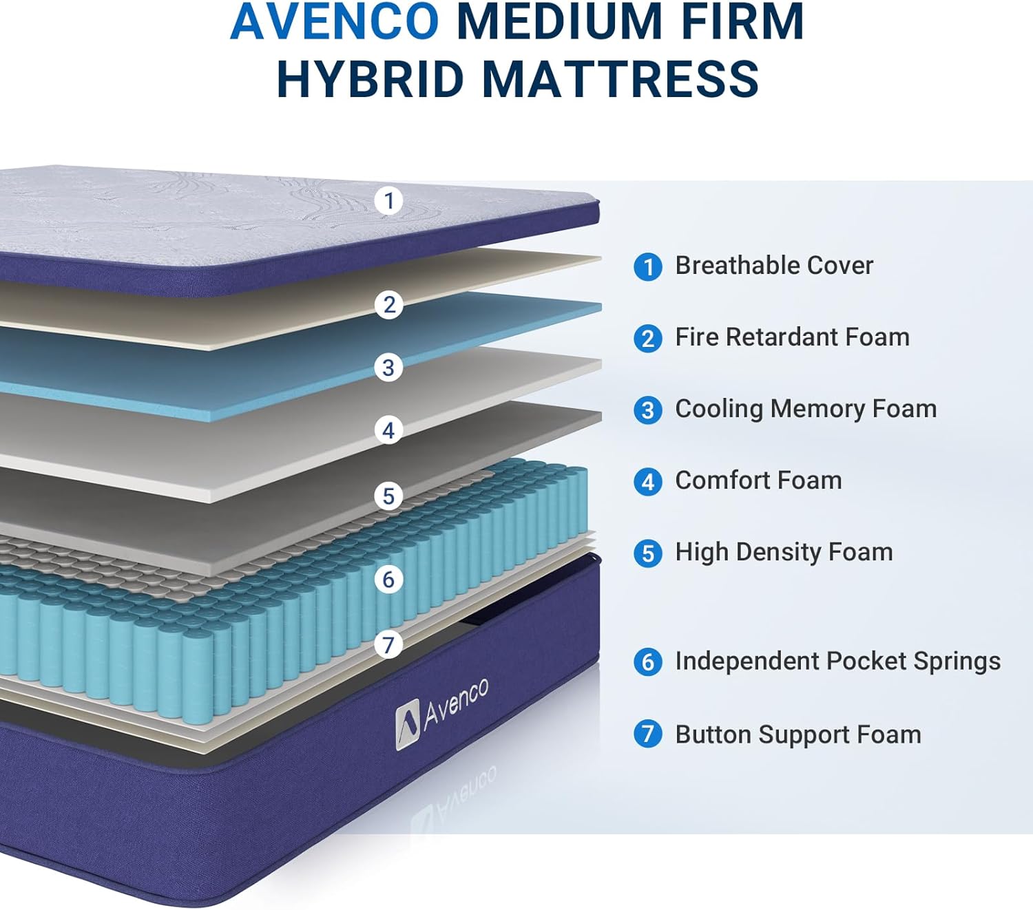 8 reviews for Avenco Queen Size Mattress in a Box, 10 Inch Hybrid Medium Firm, Pocket Innerspring for Pressure Relief & Motion Isolation, CertiPUR-US
