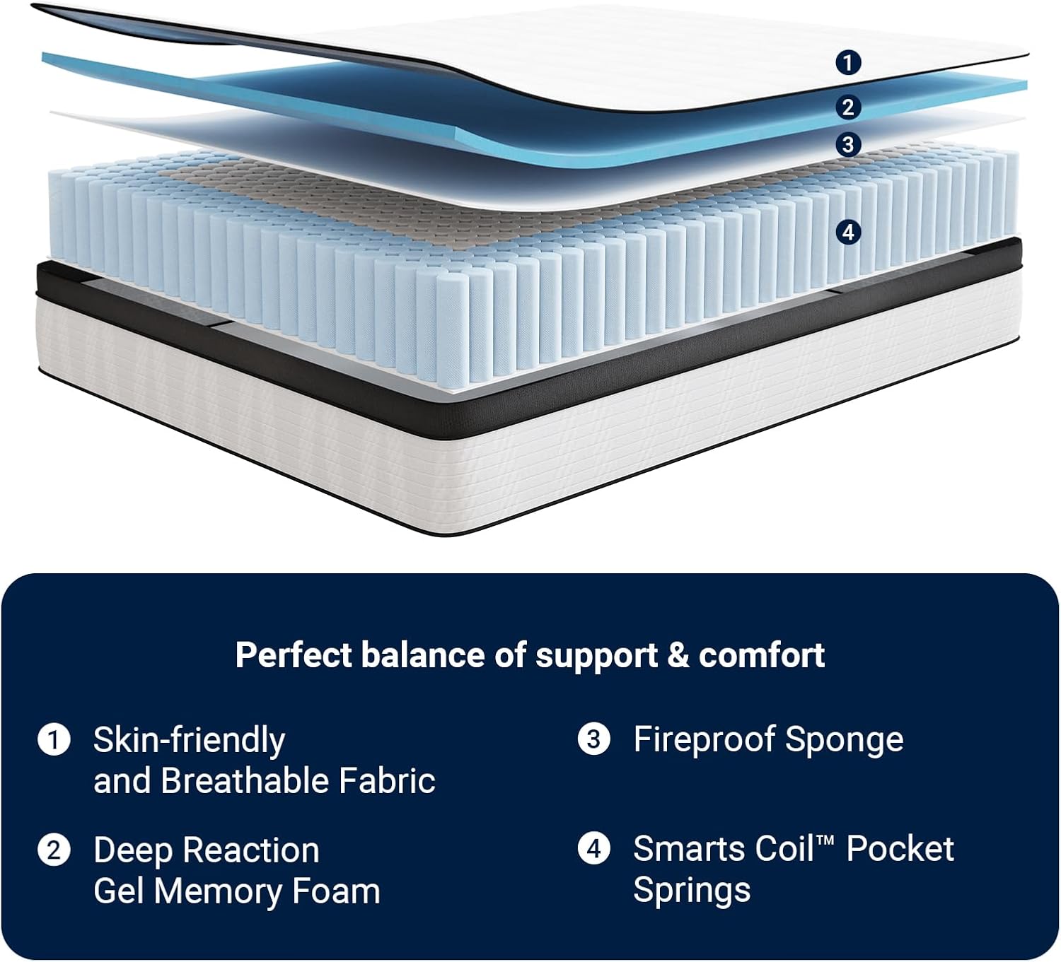 【Superior Motion Isolation】Individually wrapped Smarts Coil work with premium comfort foam to absorb movement, reducing motion transfer by 75%. Enjoy undisturbed sleep even with a restless partner.
