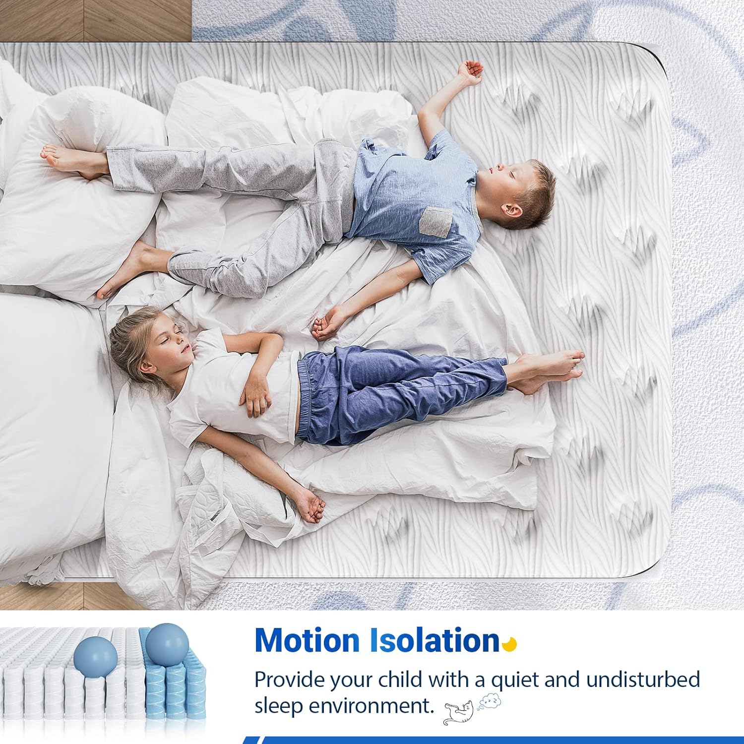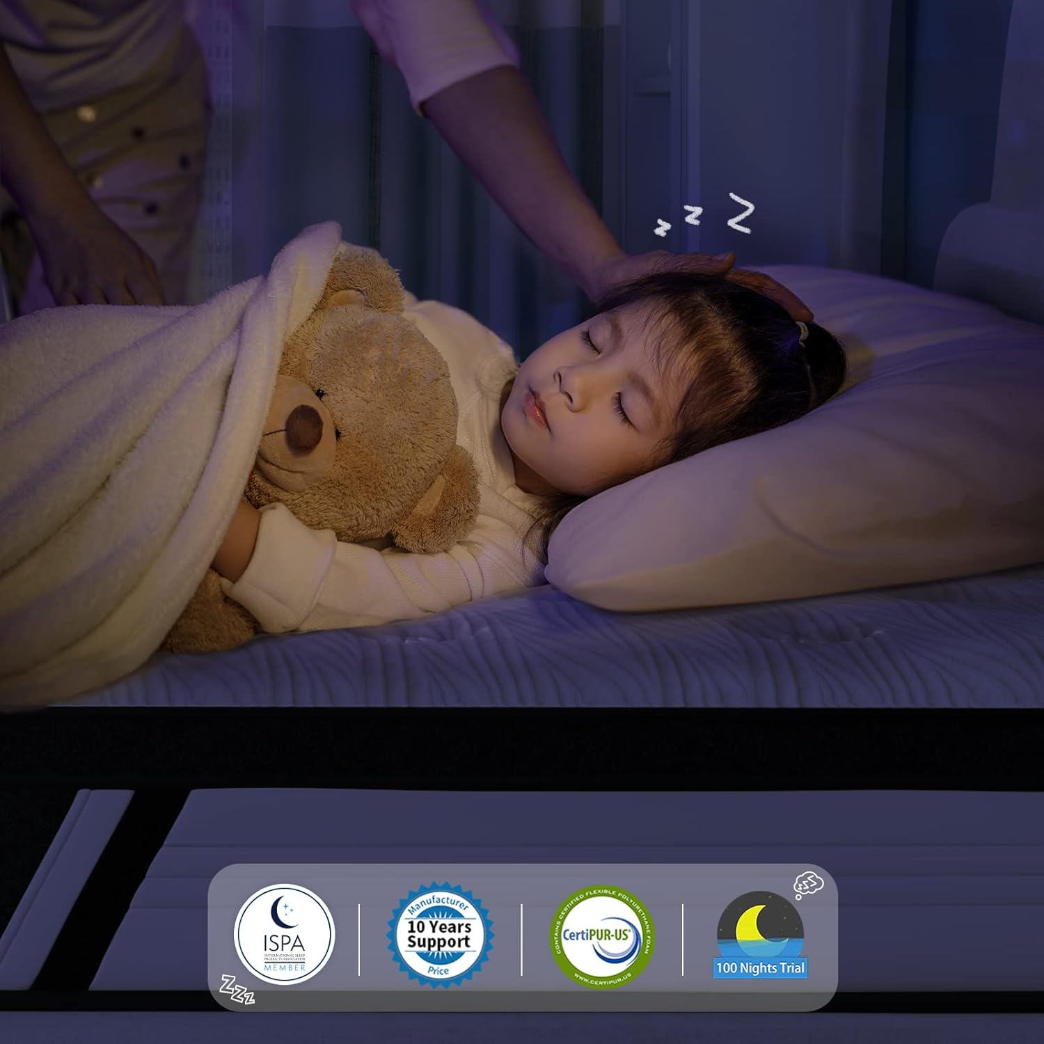 HYBRID DESIGN DRIVES THE PERFORMANCE: Avenco 10 inch twin size hybrid mattress combines the innerspring wrapped springs with the cooling gel memory foam for powerful targeted support, protect your kid’s spinal development. A transitional layer of high-density foam reinforces the top layer to maintain an even plane for your body while also giving the body a bit of extra cushioning.