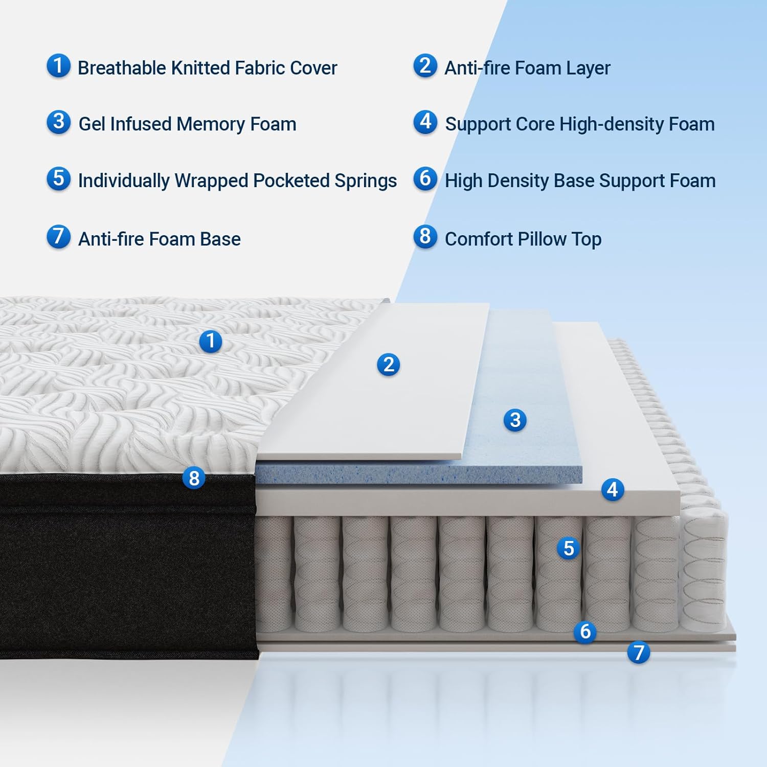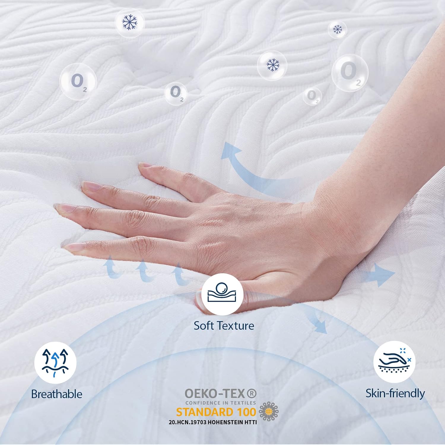 COMFORTABLE AND BREATHABLE SURFACE: A breathable knitted fabric cover encases the pillow top twin mattresses which is soft and skin-friendly. Avenco twin mattress top and bottom layers come with a layer of anti-fire foam which brings you a safe and comfortable sleeping environment.