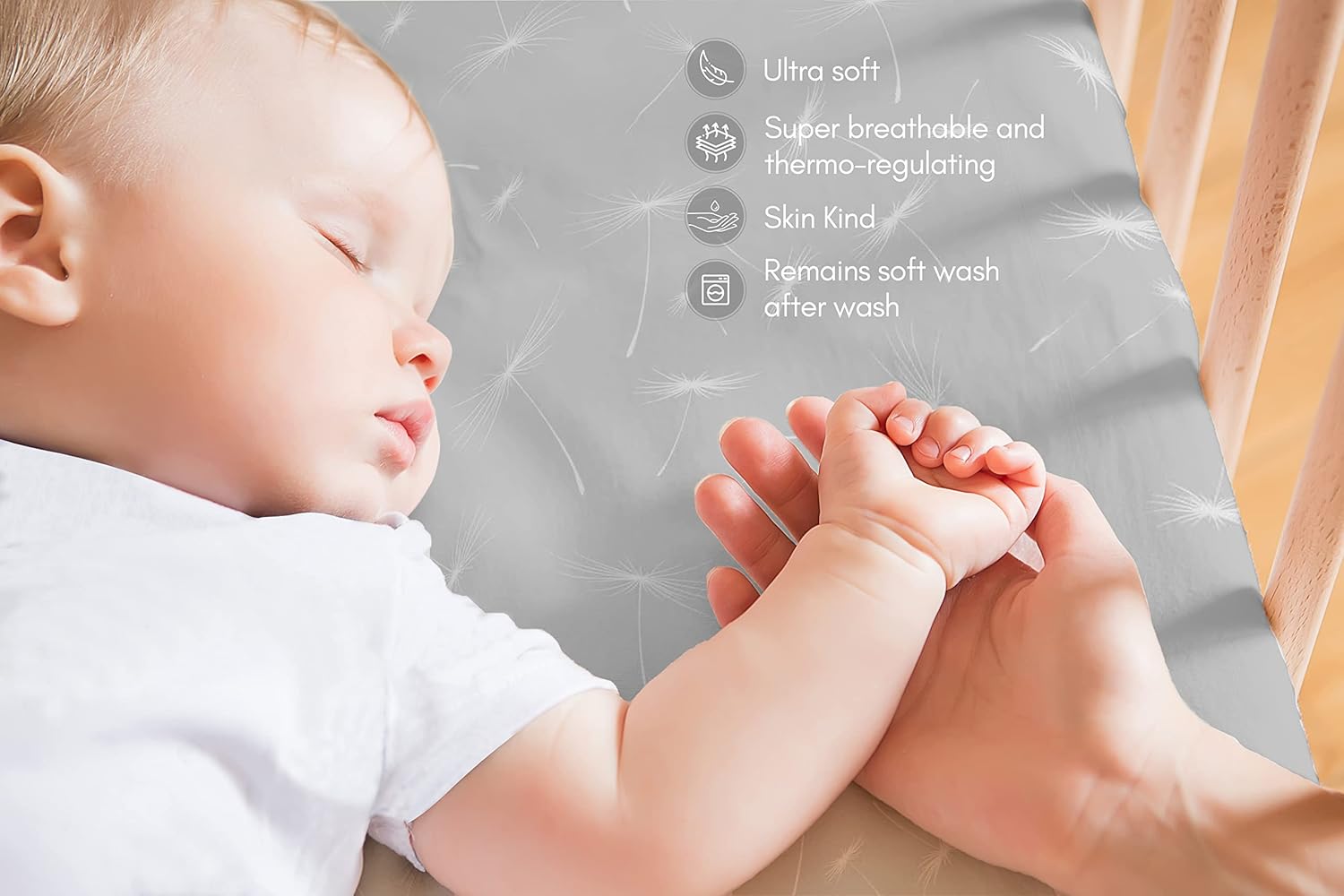 CUTE GENDER-NEUTRAL DESIGNS: Real head-turners and trendy addition to your baby nursery decor, these gender neutral crib sheets girl and crib sheets for boys are genuinely stylish and cute; Made in various soft-tone colors and patents to choose from, our cribs for babies covers feature trendy designs without compromising protection keeping your newborn wonderfully comfy while looking ever so stylish, a perfect follow on from mini crib sheets, bassinet sheet and pack n play sheets .