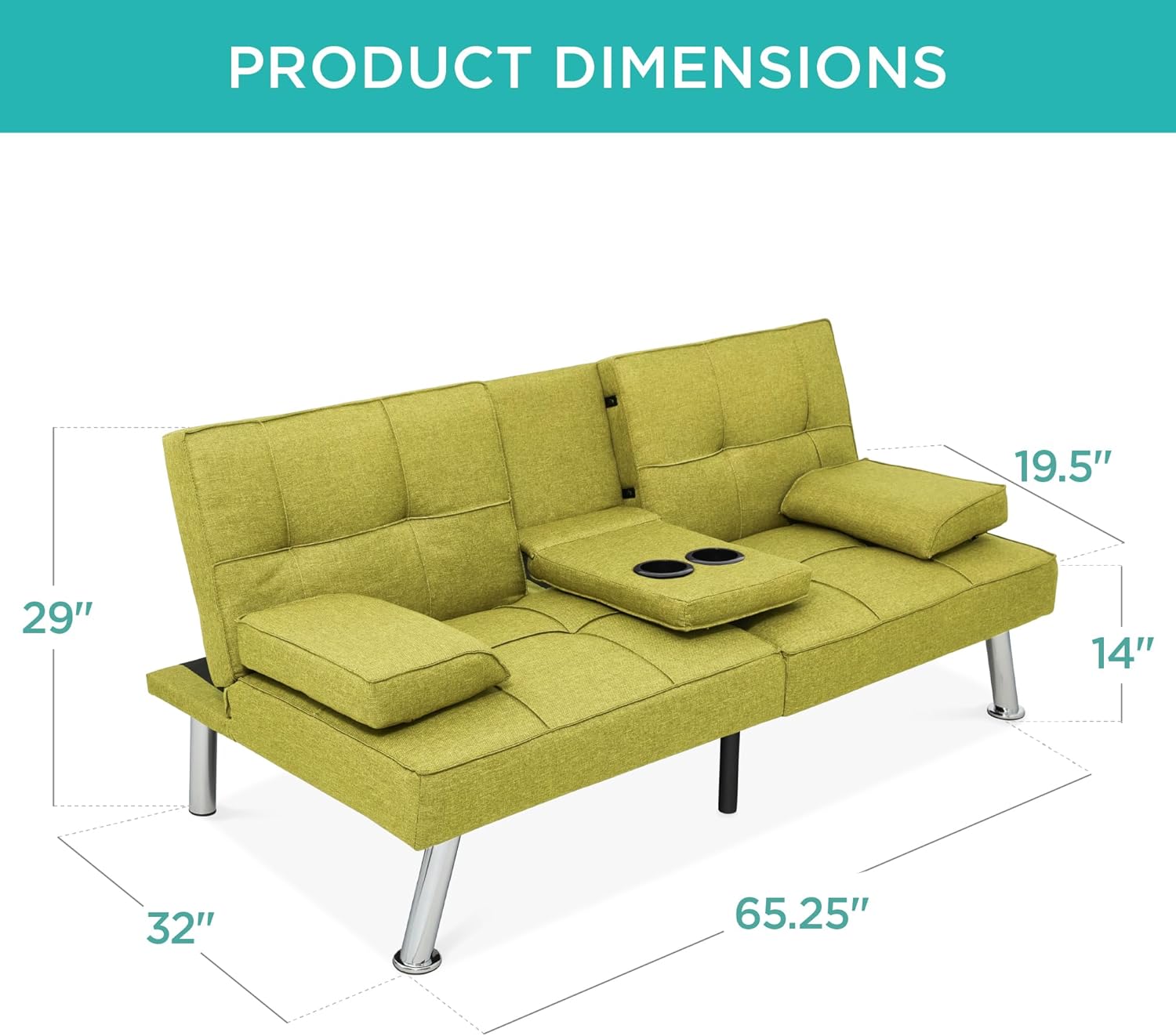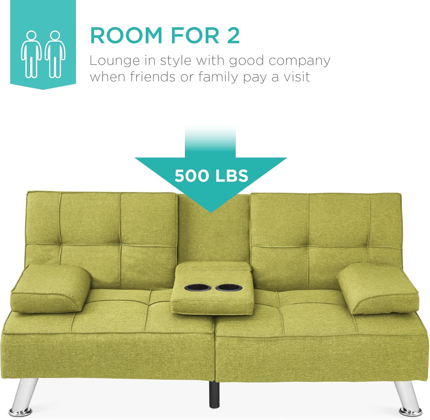 12 reviews for Best Choice Products Linen Modern Folding Futon, Reclining Sofa Bed for Apartment, Dorm w/Removable Armrests, 2 Cupholders – Chartreuse