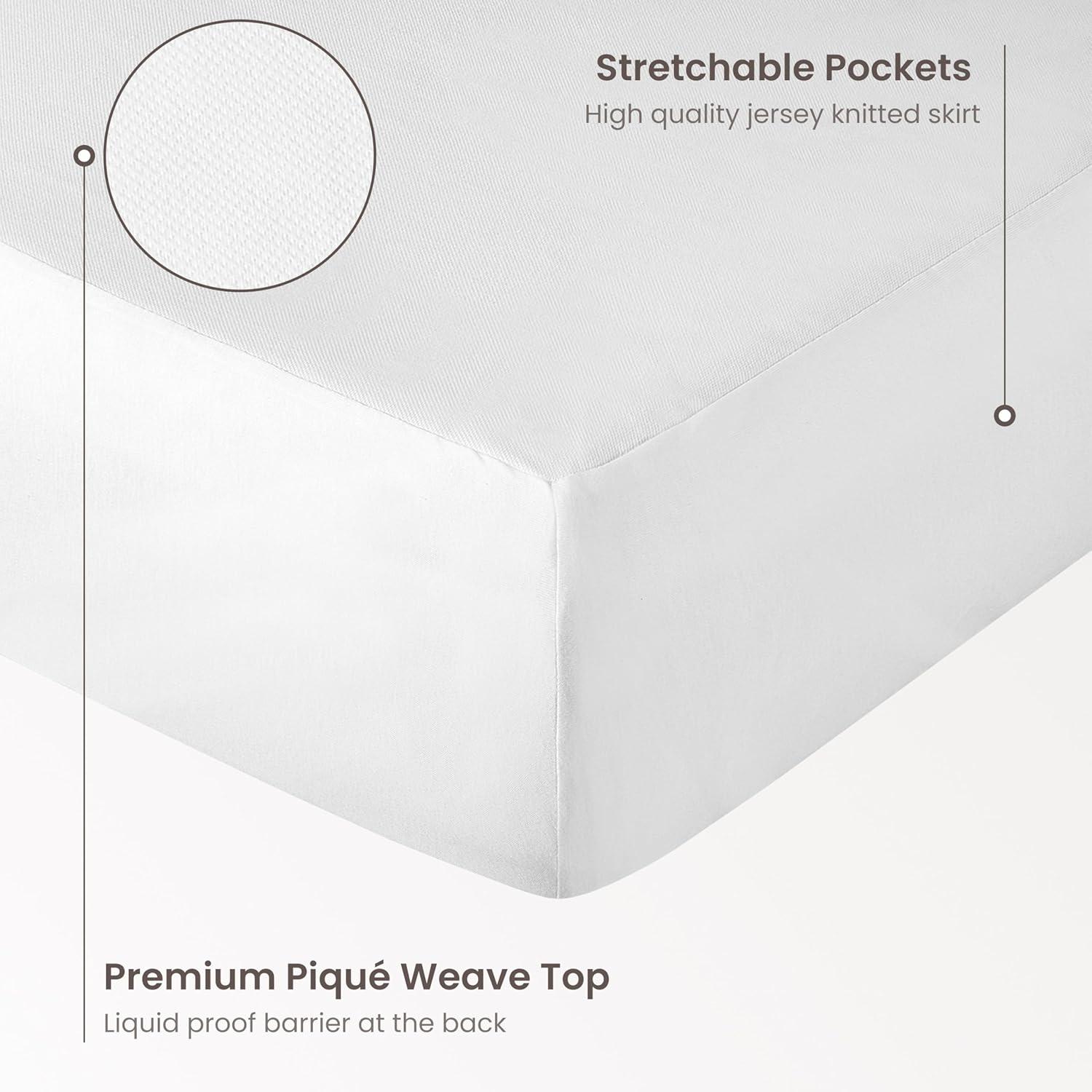 THOUGHTFULLY CRAFTED – This mattress cover is made using a premium Piqué weave organic cotton top layer along with a thin (synthetic) waterproof back layer & high-quality stretchable organic cotton jersey knitted fabric pockets. More than 95% organic materials are used in the product. 100% waterproof yet completely breathable.