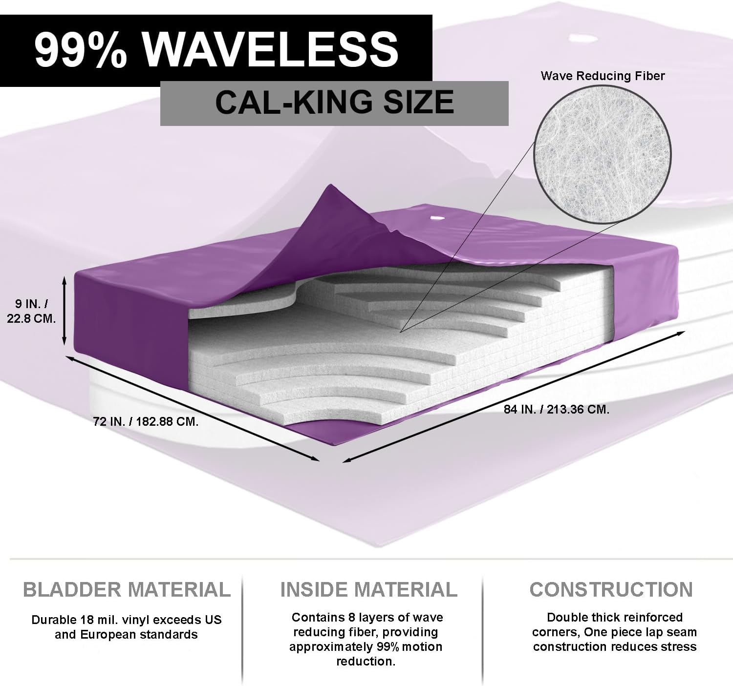 The 99% waveless waterbed mattress with wave-reducing fiber layers is an ideal choice for those who want the comfort and support of a waterbed, but without the annoying waves that can disrupt a good night’s sleep. The wave-reducing fiber layers work together to minimize movement and provide a stable sleep surface that conforms to the body.