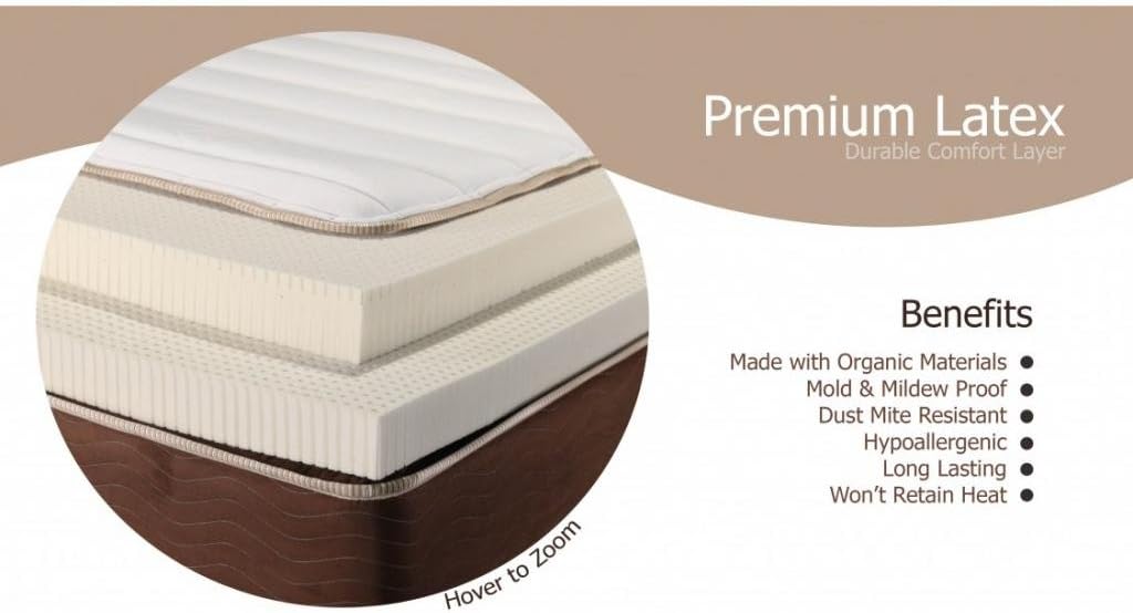 The Brooklyn Bedding Aloe Alexis Latex Mattress is a 14 inch latex mattress with 6 inches of latex. The Aloe Alexis is available in multiple comfort levels on our 1-10 comfort scale. Our custom comfort scale allows your new bed to be built to your specifications. The Aloe Alexis starts with a high density base foam core for unbeatable support under the latex. Inside the zipper top above the base foam is 2 3 inch layers of Talalay latex. The Talalay latex comes in different densities to customize the support and comfort of your bed. We will layer the latex in the bed with two different densities in order to give your mattress two distinct comfort levels within the same bed. For an example if you ordered our level 6 (most popular) it would come with a layer of level 6 latex and level 5. If you thought the level 6 was too soft the mattress can be made firmer by rotating the layers and putting the level 5 on top. We also can give you the option of exchanging out the latex layers once the bed is in your home in order to get the comfort level perfect for you. Above our latex layer is our layer of wool and Aloe Vera cover. These two materials allow for a cooler sleep and better Temperature regulation.