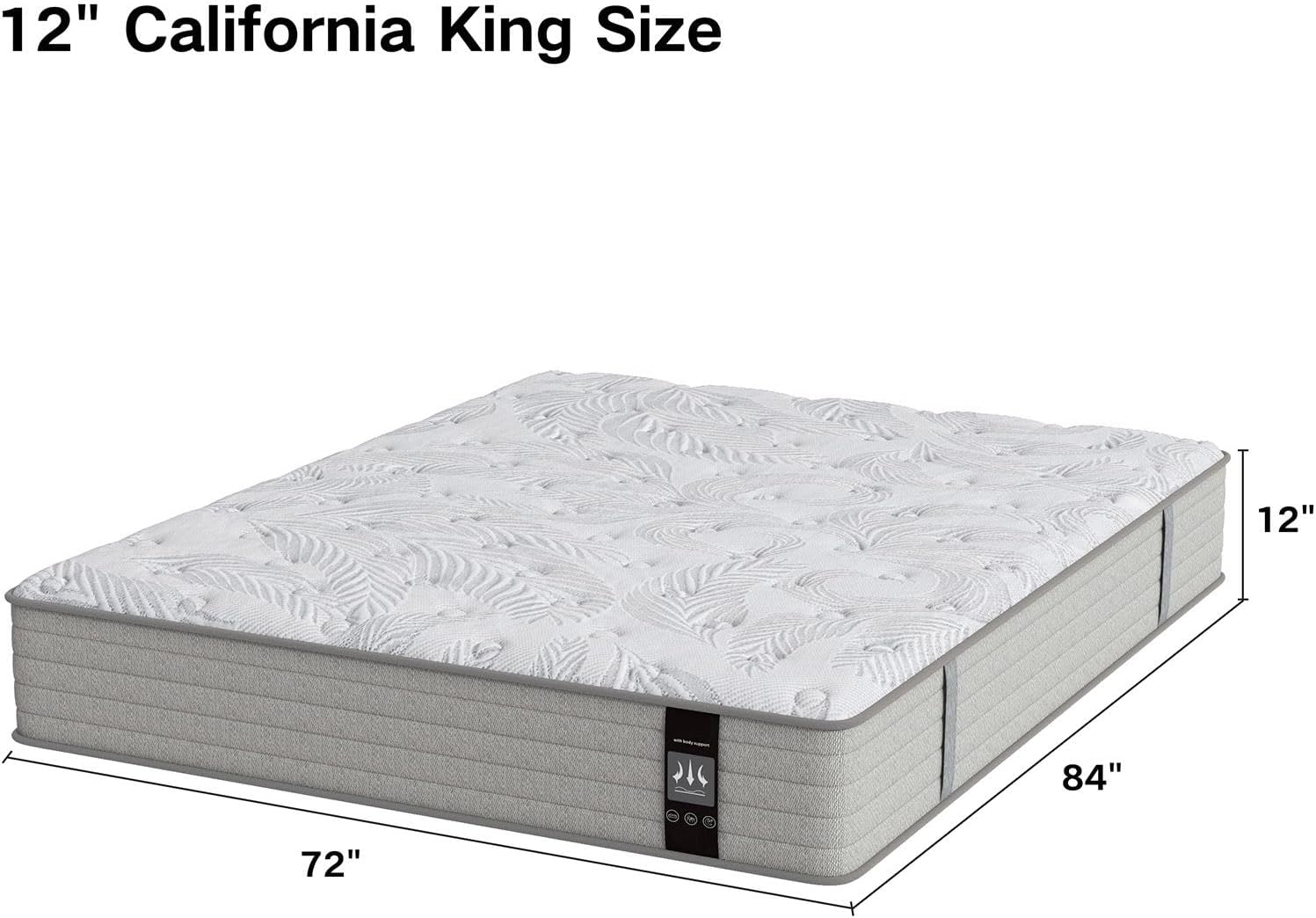 【Individual Pocketed Springs】 Our 12 inch hybrid california king mattress is supported by hundreds of high quality stainless steel individual pocketed springs, each spring works independently to provide all-around average support for 7 parts of the body (head, neck, shoulders, waist, hips, legs, feet) and the cal king mattress fits for your body curves perfectly. Shock absorption and elasticity take good care of your spine and help to adjust and correct your sleeping posture.