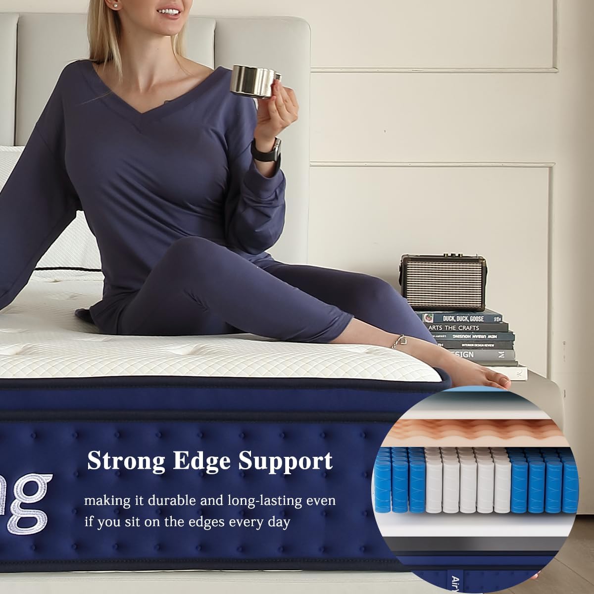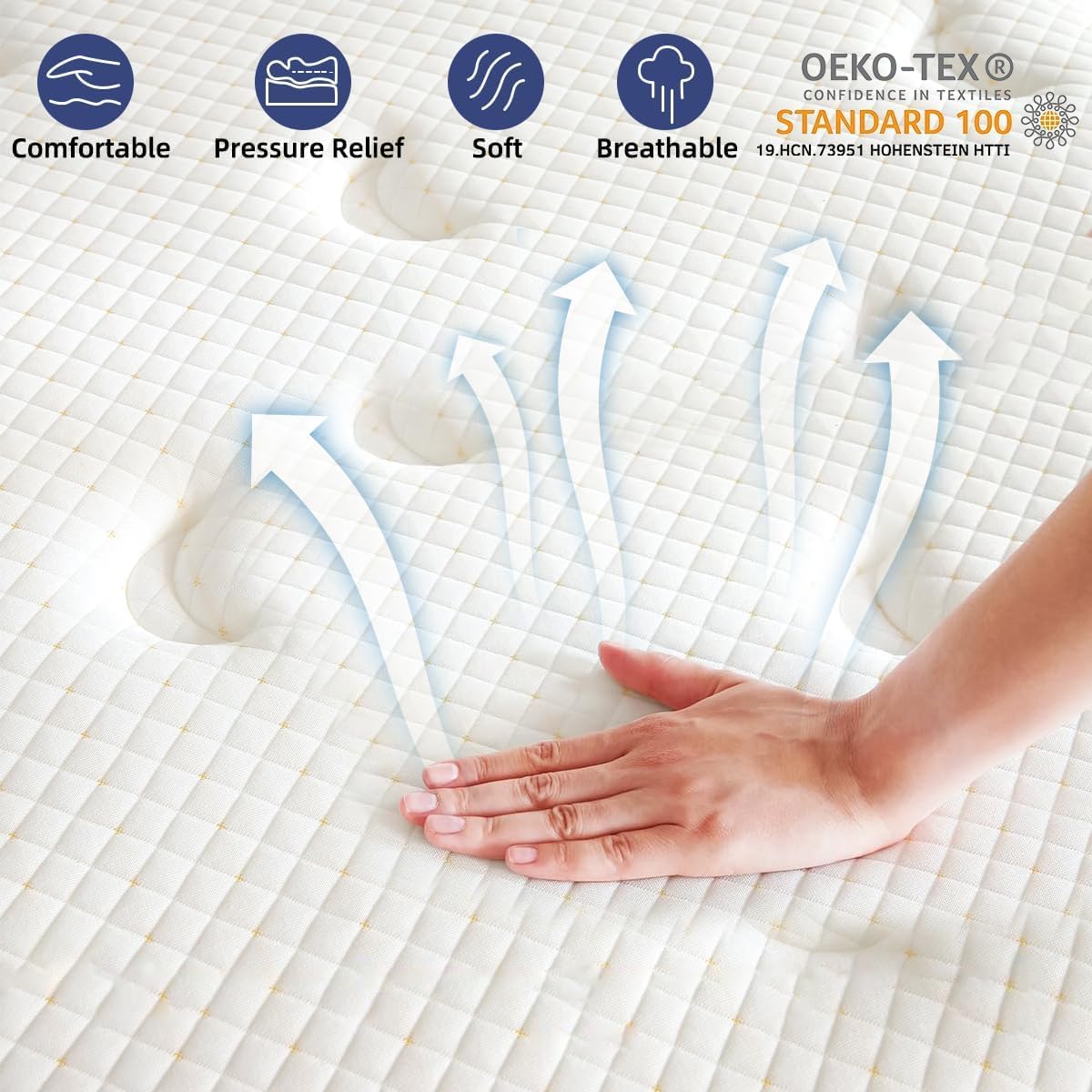 🛏DURABLE RESILIENCE: Our hybrid mattresses include multiple layers of quality fillings, so you don’t have to worry about any collapsing or resilience issues. The mattress also offers strong edge support to ensure consistent performance across the entire surface of the mattress, making it durable and long-lasting even if you sit on the edges every day.
