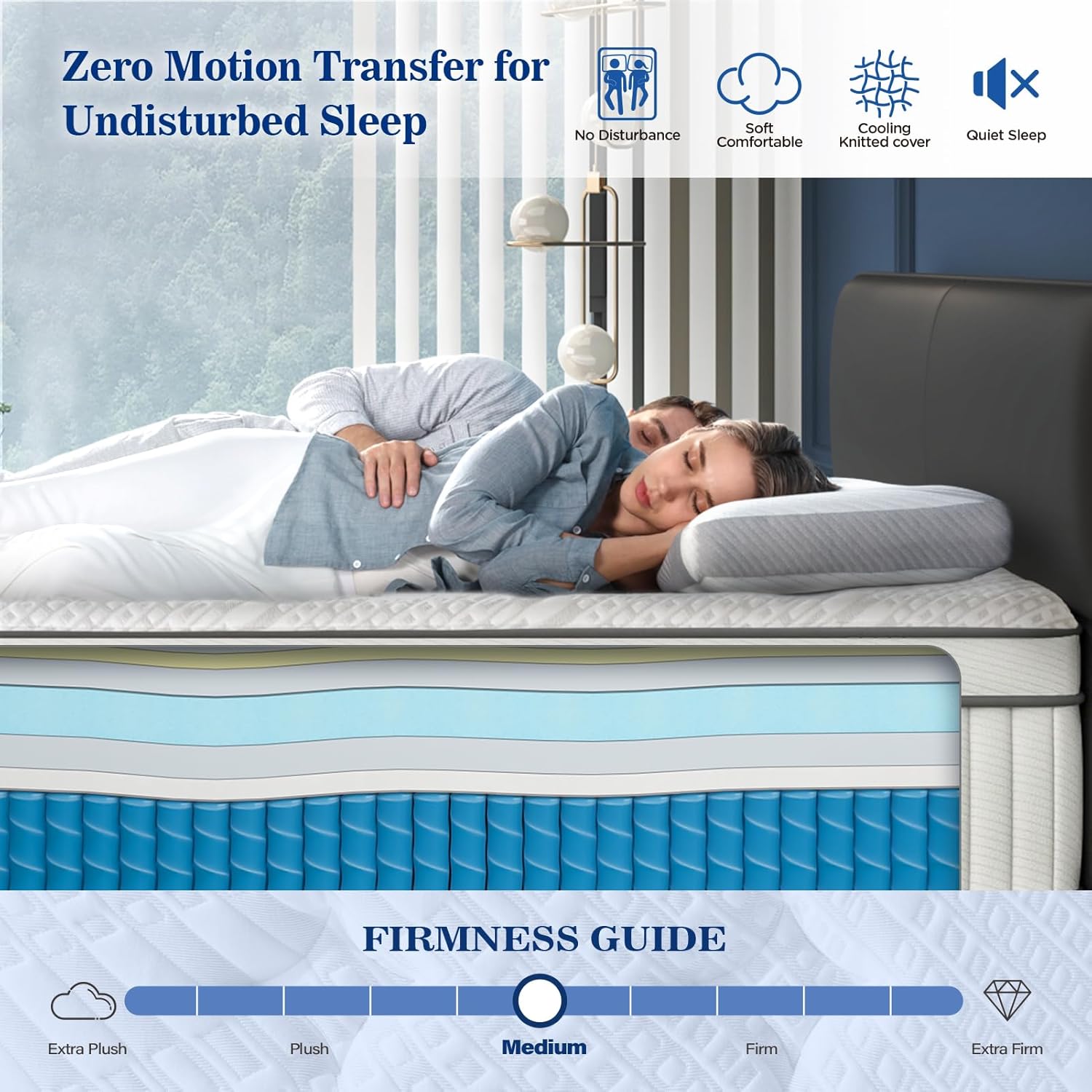 I recently purchased this mattress online, and Iâm thrilled with my decision! From the first night, it provided perfect support and cloud-like comfortâno more waking up with aches and pains. The medium-firm feel is ideal for back and side sleepers, and my partner doesnât feel me move at all, so no more sleep disruptions!