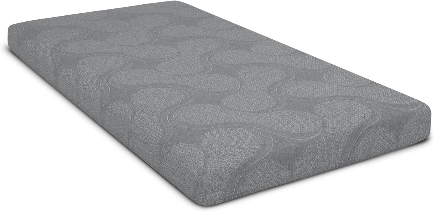 The Snooze 6-inch Memory Foam Mattress by Delta Children features multiple layers of foam that help your child to sleep better and longer. This mattress has a 2-inch layer of comfort memory foam on top a 4-inch supportive base made from high-quality foam. The comfort memory foam on the top conforms to your child’s body and offers pressure point relief that helps kids and young adults get the rest that is essential to their overall health and development. A water and stain resistant knit cover helps to keep the mattress clean and blemish free for years to come. To make life even simpler, this mattress is shipped to your doorstep in a small, easy-to-ship box. It’s compressed, rolled and vacuum-sealed for your convenience. Allow 24 hours for the mattress to fully expand. The Snooze 6-inch Memory Foam Mattress by Delta Children is available in Twin and Full Size.