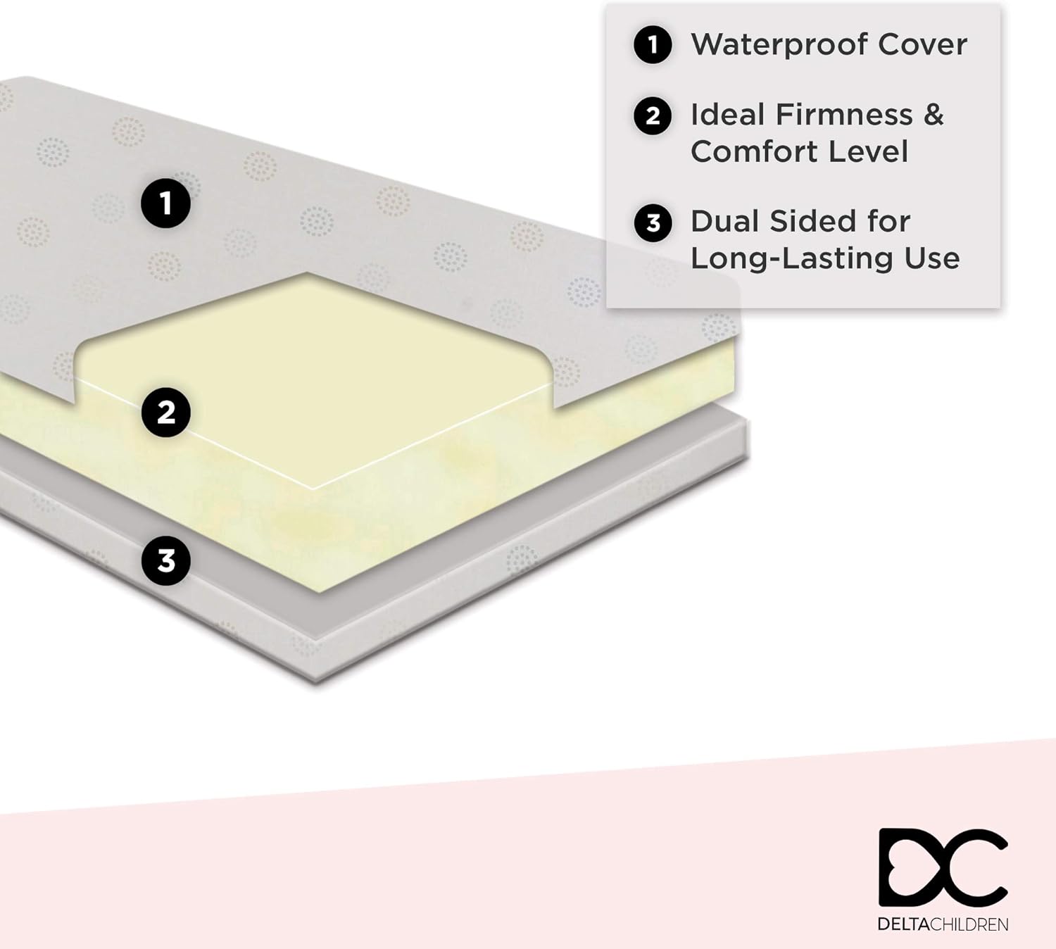 Delta Children’s Twinkle Stars Crib & Toddler Mattress offers your baby or toddler support and comfort at a great price. Built with a firm polyester fiber core, this sturdy mattress is has a durable waterproof cover for easy cleanup. Finished with square corners to help create a secure fit inside a crib or toddler bed, the Twinkle Stars Crib & Toddler Mattress is the ideal choice for your growing child. All Delta Children crib mattresses are GREENGUARD Gold Certified and meet the strictest standards offered by the GREENGUARD Environmental Institute, which recognizes products with low chemical emissions, contributing to improved indoor air quality.