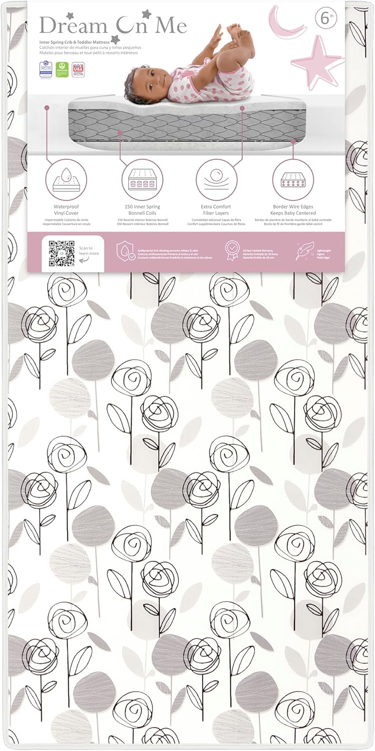 FEATURES TO LOOKOUT FOR: Lightweight, designed without the use of flame retardants, meets the 16 CFR 1632/1633 Federal Flammability Standards. Vinyl Cover and & 150 coil innerspring for a firm foundation.