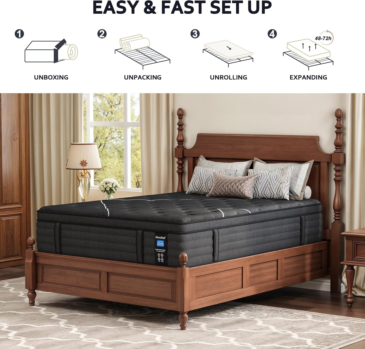 【King Mattress In A Box】Simplify your sleep upgrade with our convenient mattress-in-a-box design. Delivered directly to your doorstep, this mattress is easy to set up – just unbox it and allow 48-72H for full expansion and any initial odor to dissipate. Suitable for box springs, floors, foundations, slatted platforms, and flat platforms.