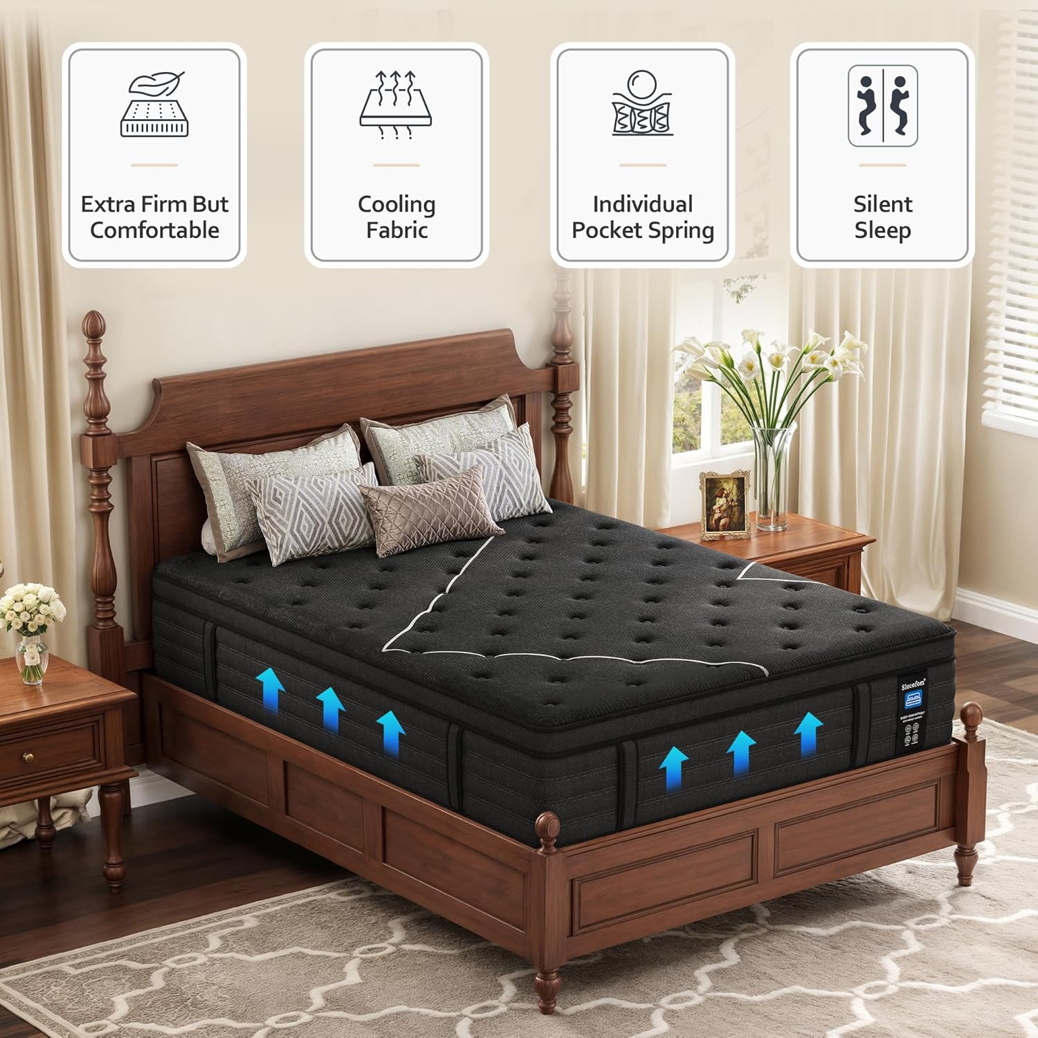 【Tight & Thick Foam Edge Design】All edge of ours 14″ extra firm mattress feature luxuriously thick foam that absorbs noise and vibration, ensure restful sleep experience. And the interior consists of multi-layer high-density memory foam has better resilience than other traditional memory foam. Designed for those who prefer a strong, no-sink feel, promoting better posture and reducing pressure points.
