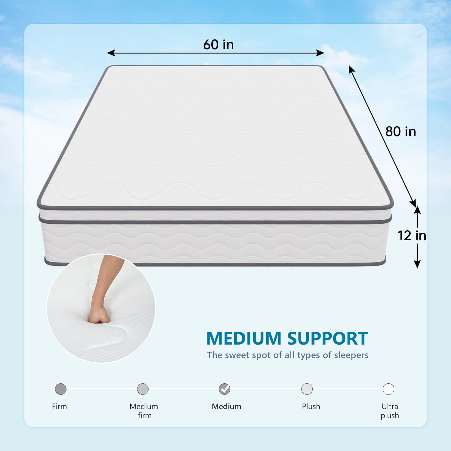 5 reviews for FDW 12 Inch Queen Mattress,Hybrid Mattress Memory Foam & Innerspring, Premium Foam Mattress,Pressure Relief,CertiPUR-US Certified,Medium Firm,White