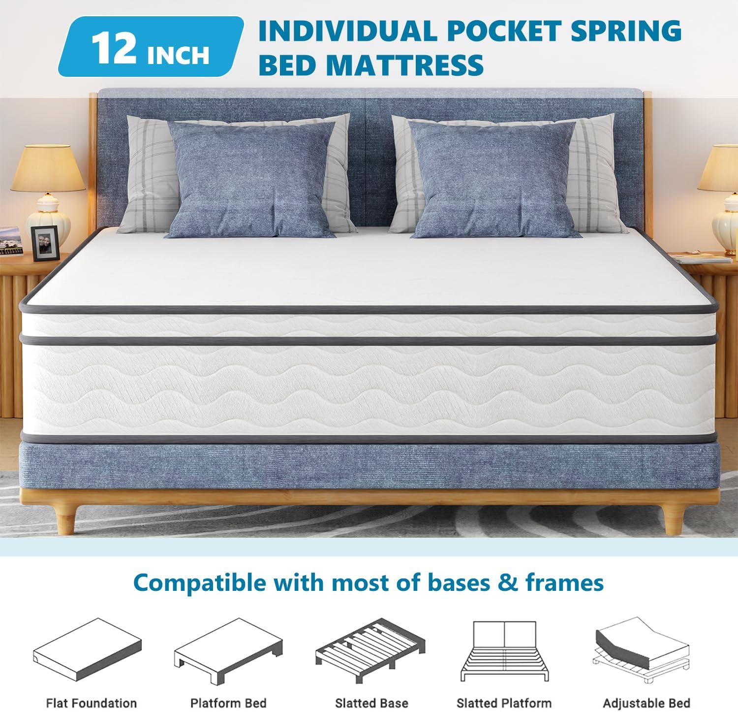 Quiet and Hassle-Free Sleep:The individual innerspring pocket coils in our mattress work independently, it tends to reduce noise and isolate motion when you move, effectively avoid movement interference between partners, and ensure your sleeping quality, makes you sleep through the night without disturbance