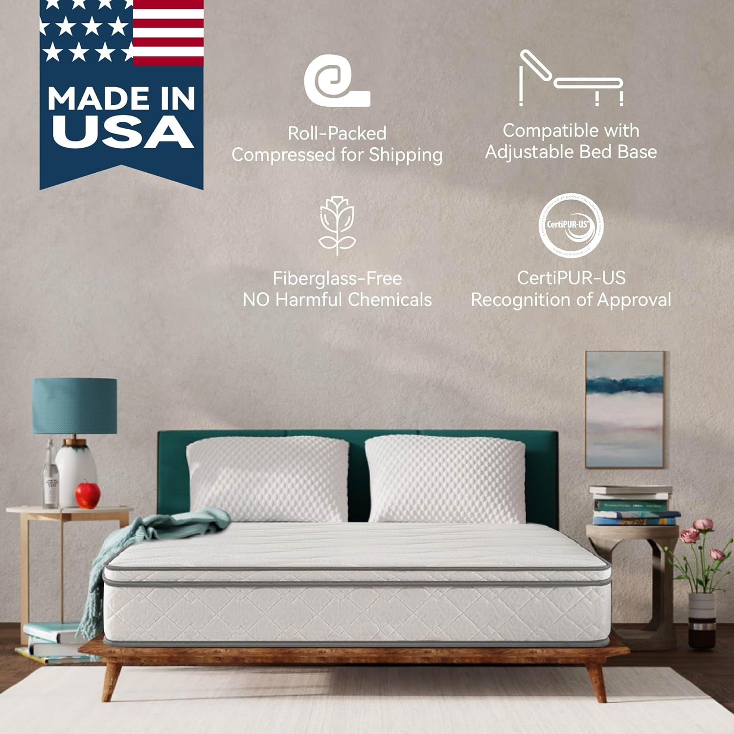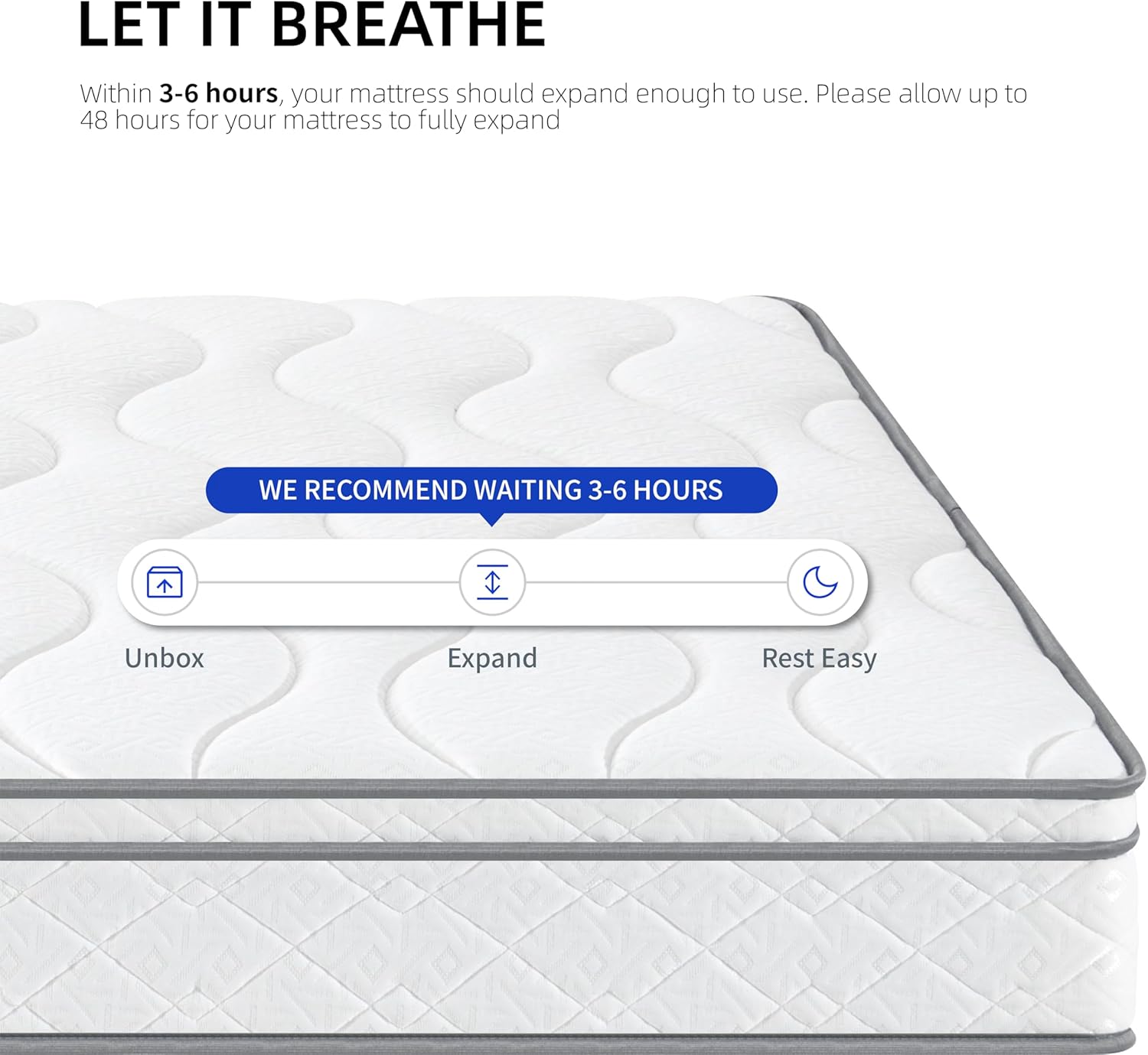 【ARRIVES IN A BOX】: Made in the USA, the mattress arrives compressed and rolled in a box for easy transport and setup. Simply unbox, unroll, and allow up to 48 hours for full expansion, and enjoy quality comfort right at home.