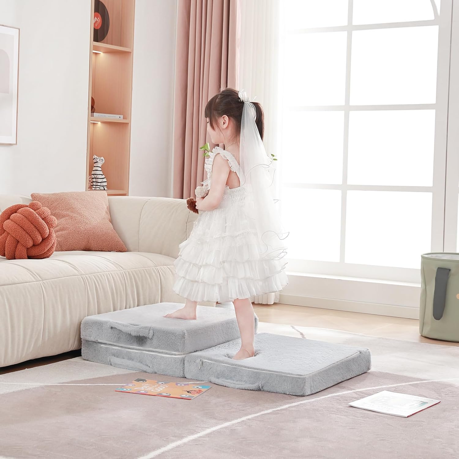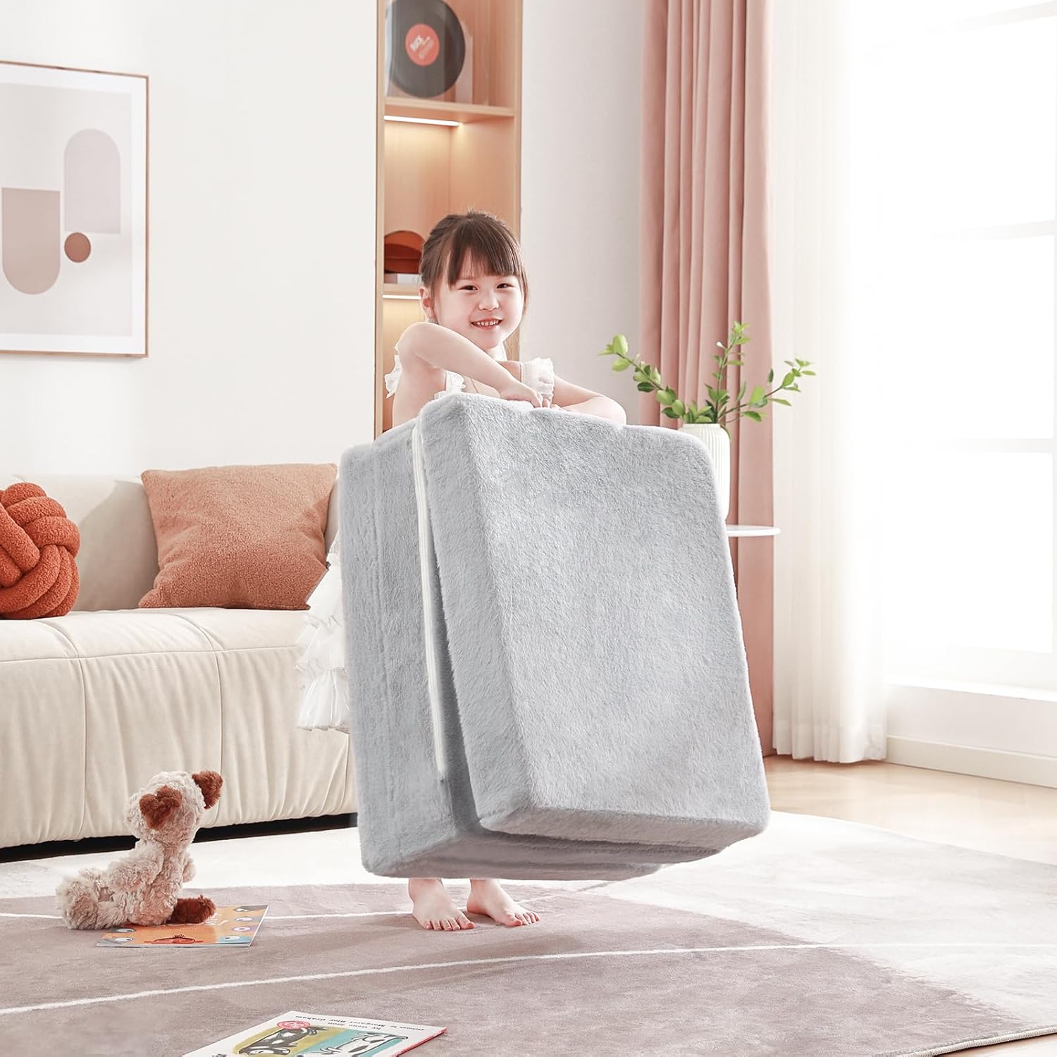 【Safe & Skin-friendly Material】The cover of kids floor nap mat cover is made of high quality short plush which is durable and skin-friendly. High density and hardness of the supportive foam keep the sturdy toddler sofa couch in shape and provide our lovely kids all-day comfort. Its premium quality also ensures immediate expansion without needing long wait.