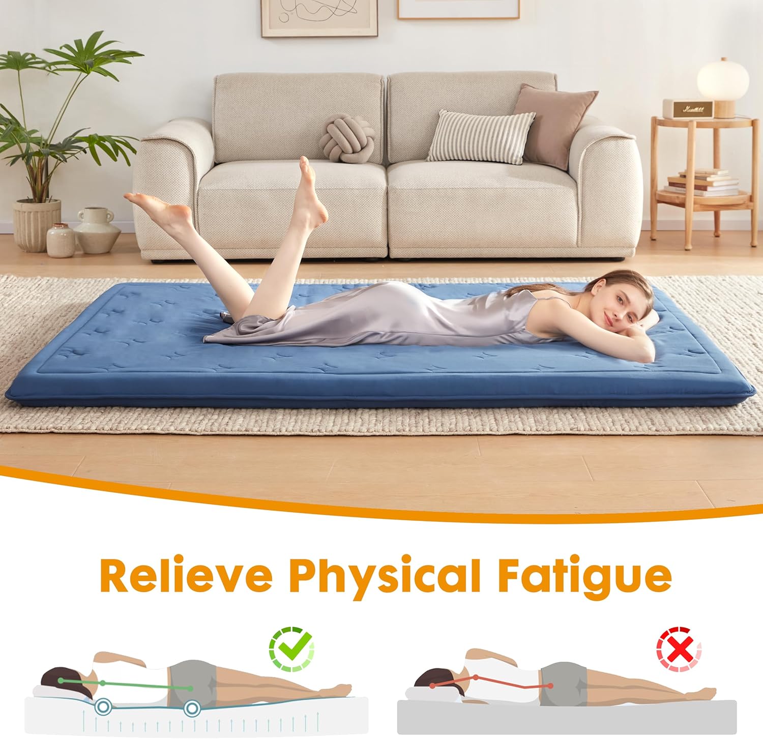 Skin-friendly & Exceptional quilting: Our futon mattress is designed with square stitching to ensure even distribution of the filling. The floor mattress to contour better to your back and spine, providing superior support. The futon cover is sufficiently skin-friendly and breathable, maintaining a consistently cool sensation even during extended use.