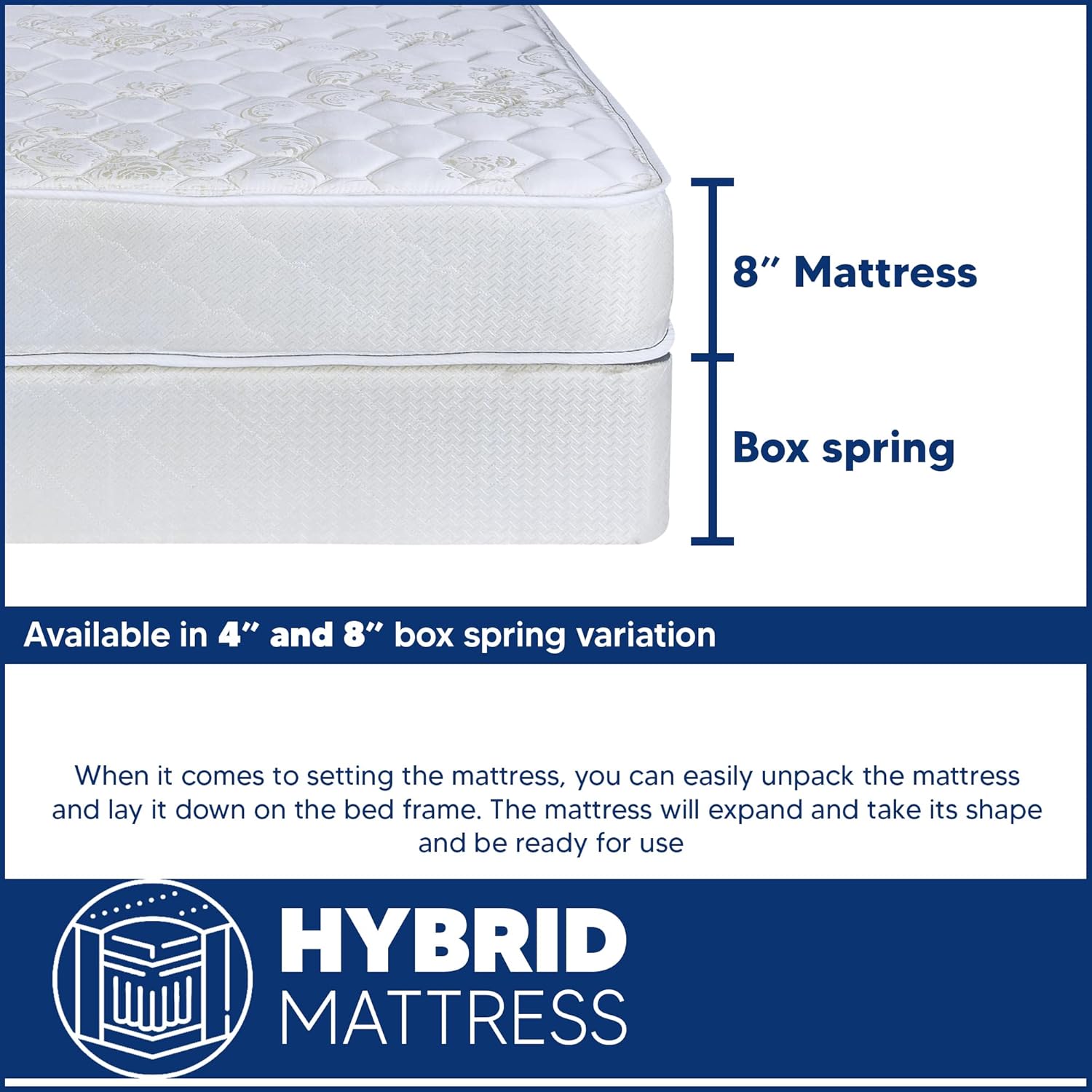 This exceptional mattress by provides a luxurious layer of comfort, ensuring years of long lasting restful sleep. Scientifically engineered to target the right points on your back and ultimately achieve the comfort level desired. The innerspring coils are situated between layers of foam,creating a sturdy core cushioned by soft, flexible padding for extra comfort. This mattress and box spring meets federal flammability standard 16 CFR 1633.