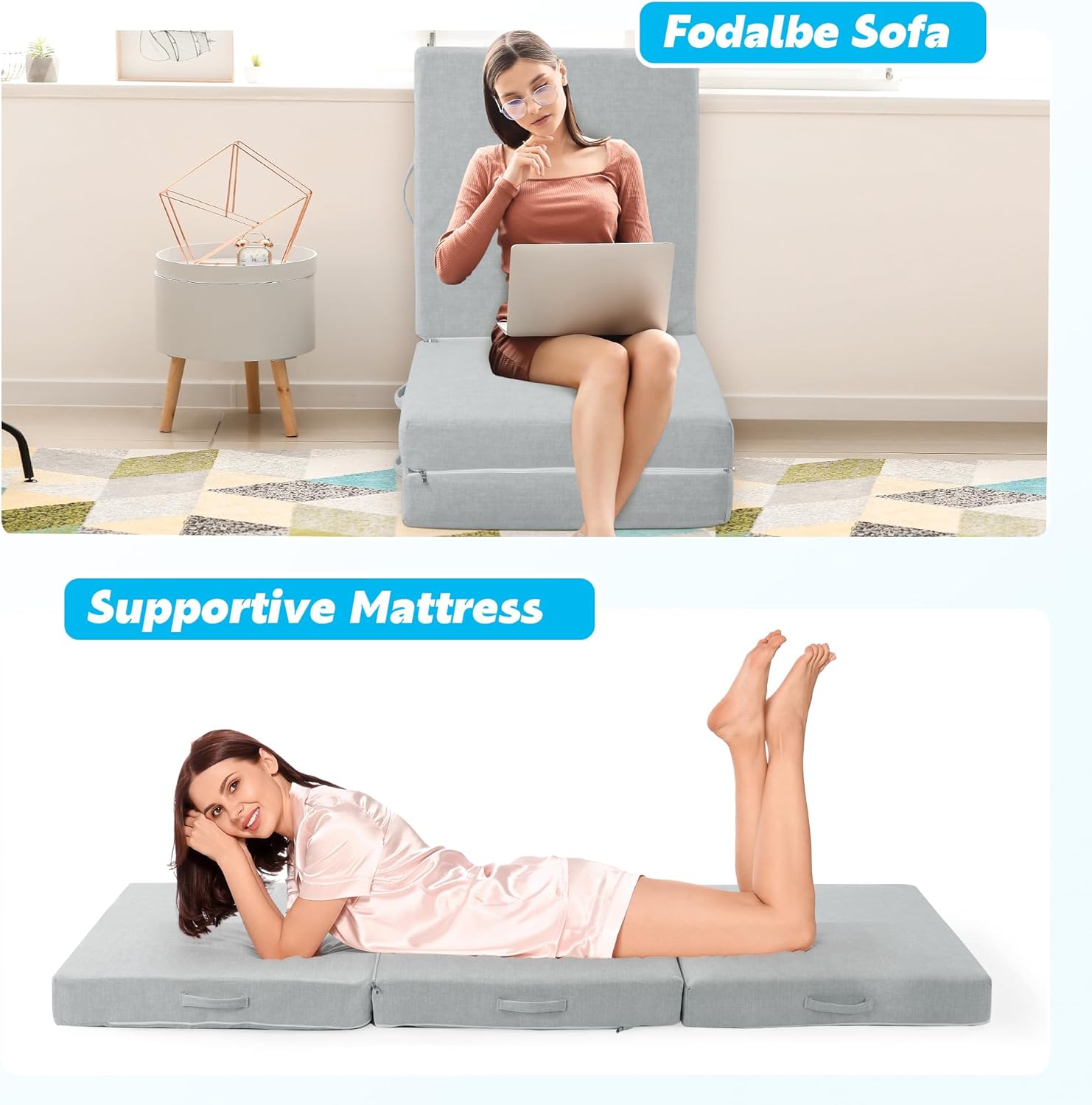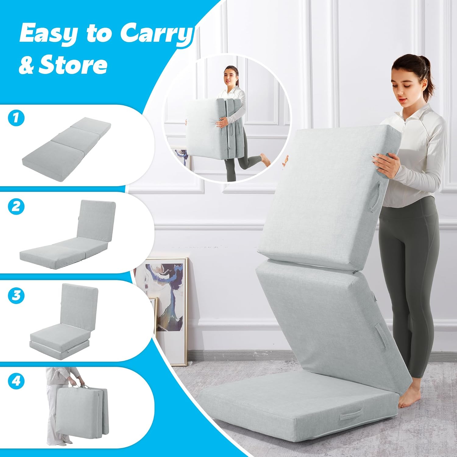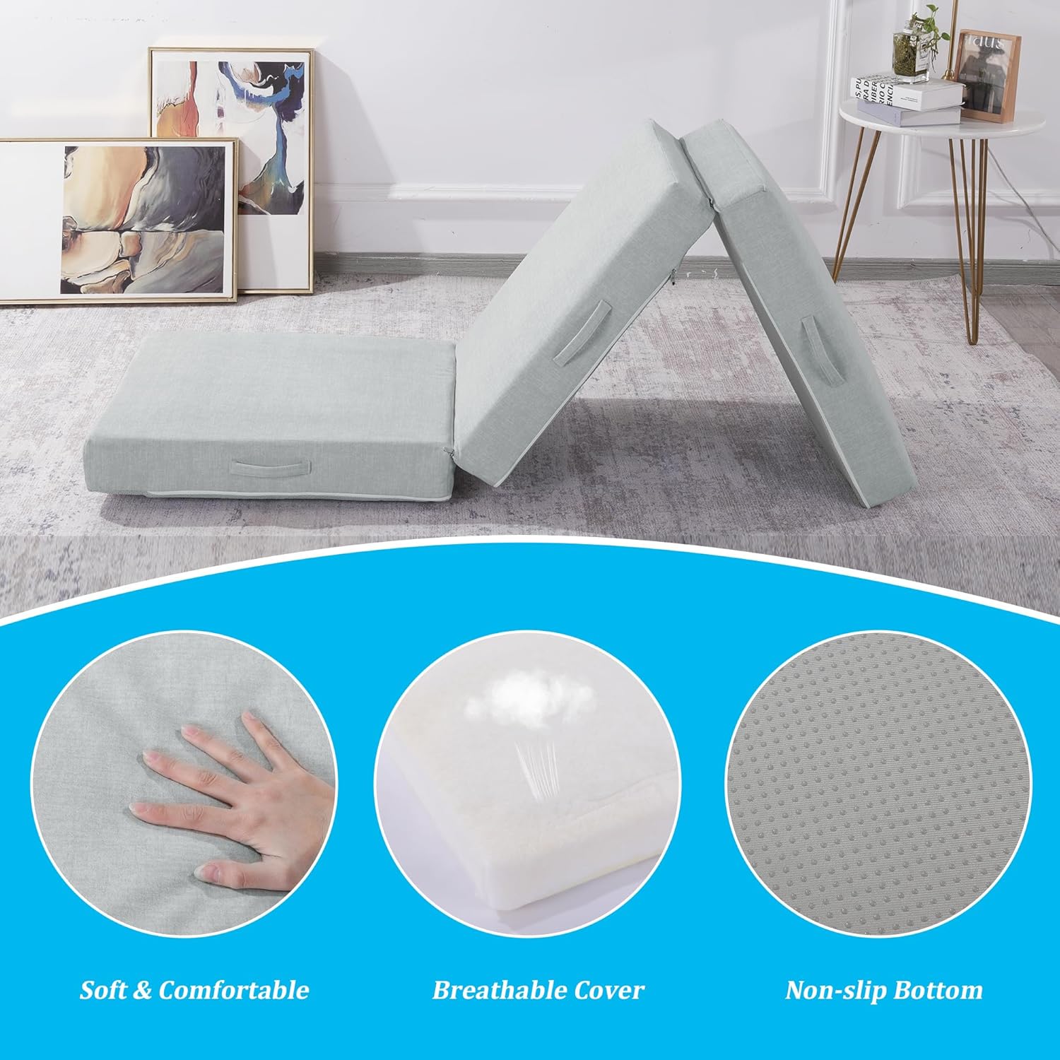 4 reviews for HOMBYS High Density Foam Trifold Floor Mattress with Inner Spring,Foldable Floor Bed Mattress Single Size,Portable Folding Mat,Guest Sleeping Mattress for Floor,4 inch Temporary Bed,75″x25″x4″,Gray