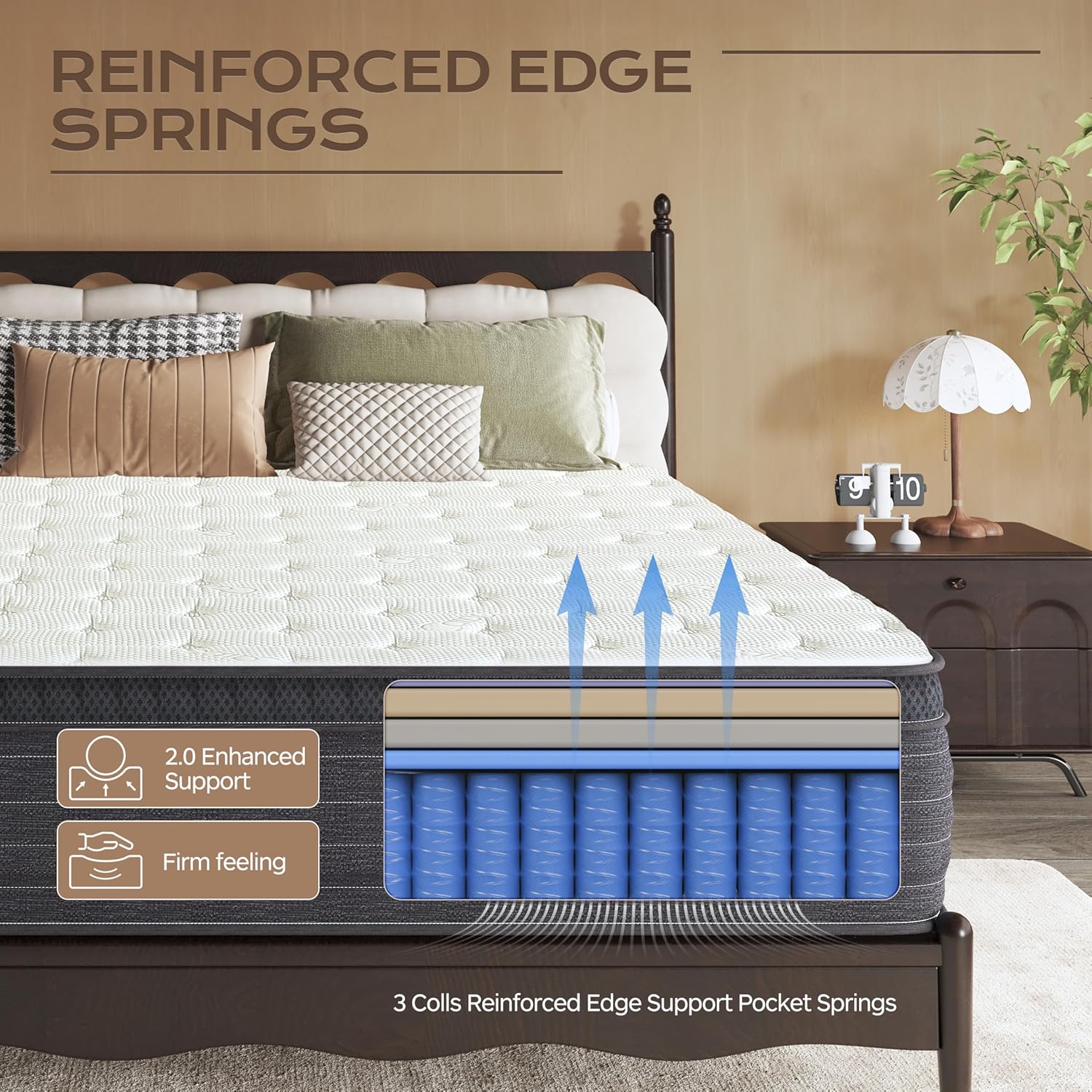 【Individual Pocket Springs: Tailored Support and Reduced Disturbance】Equipped with individual pocket springs, our mattress stands out for its precise support, contouring to the unique curves of your body for targeted comfort. Unlike conventional spring systems that span the entire mattress, each pocket spring operates independently, minimizing motion transfer. This means that when you move or adjust your position during sleep, only the springs beneath you will compress, ensuring a peaceful night’s rest for both you and your partner. The robust wire gauge ensures sufficient support, making it ideal for those who prefer a softer feel but require enhanced support due to a larger build.