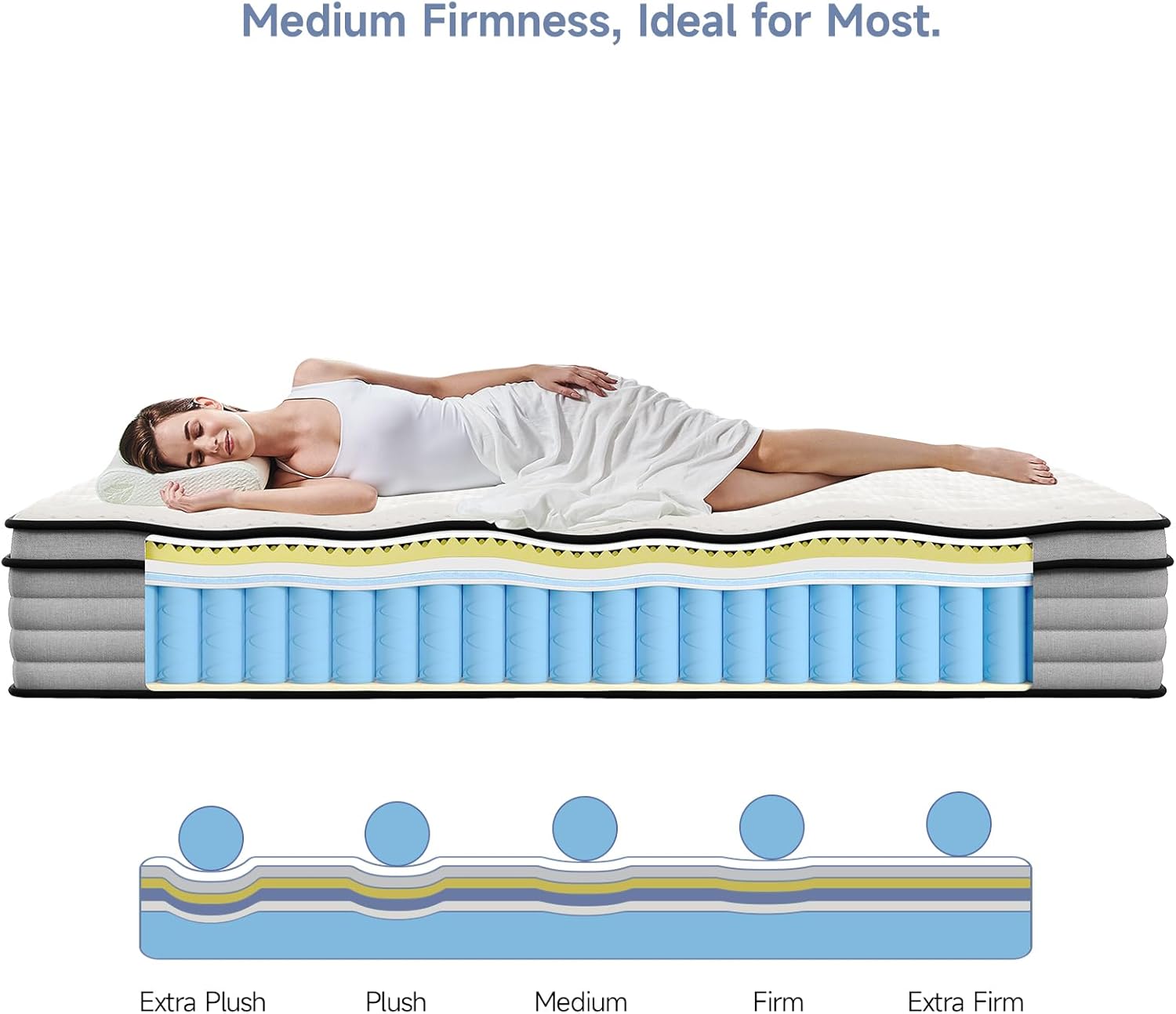 Premium Hybrid Construction: Combines memory foam and innerspring coils for the perfect balance of plush cushioning and robust support.Ideal for kinds of sleep positions, ensuring you wake up refreshed every morning