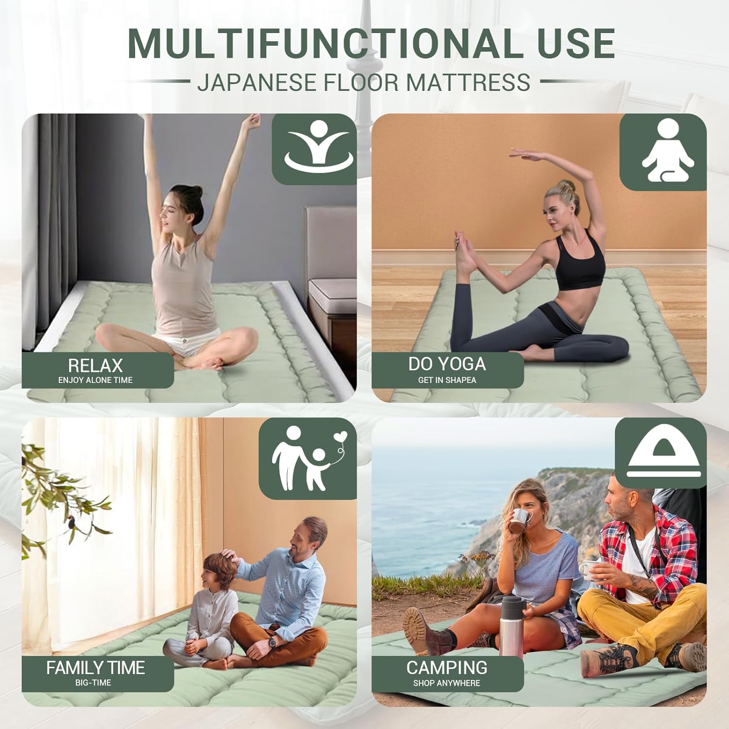 [Multifunctional Mattress]:Use it as a bedroom futon,living room lounger,mattress topper,sleeping mat,tent mat,guest mattress for floor, kids’play mat,camping pad or Meditation /yoga mat.Safe and cozy for kids playtime,pet naps,or movie nights–Satisfying small apartments,dorm rooms,or minimalist living–it is a good accompany for your family.