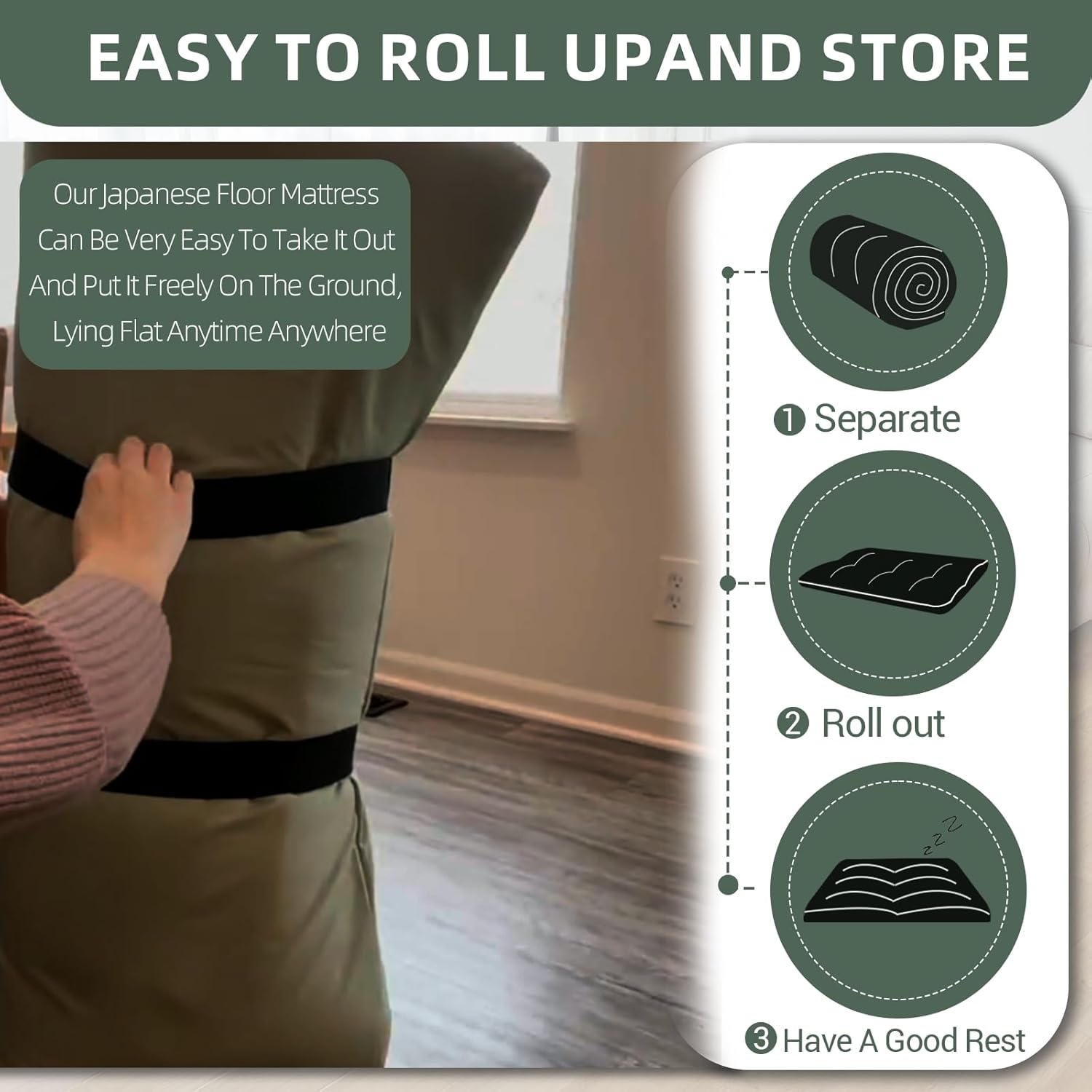 7 reviews for Japanese Floor Mattress Futon Mattress Twin Size (39″x80″) Foldable Tatami Mattress Portable Roll Up Sleeping Pad for Adults,Guest Bed,Dormitory,Camping,Green A