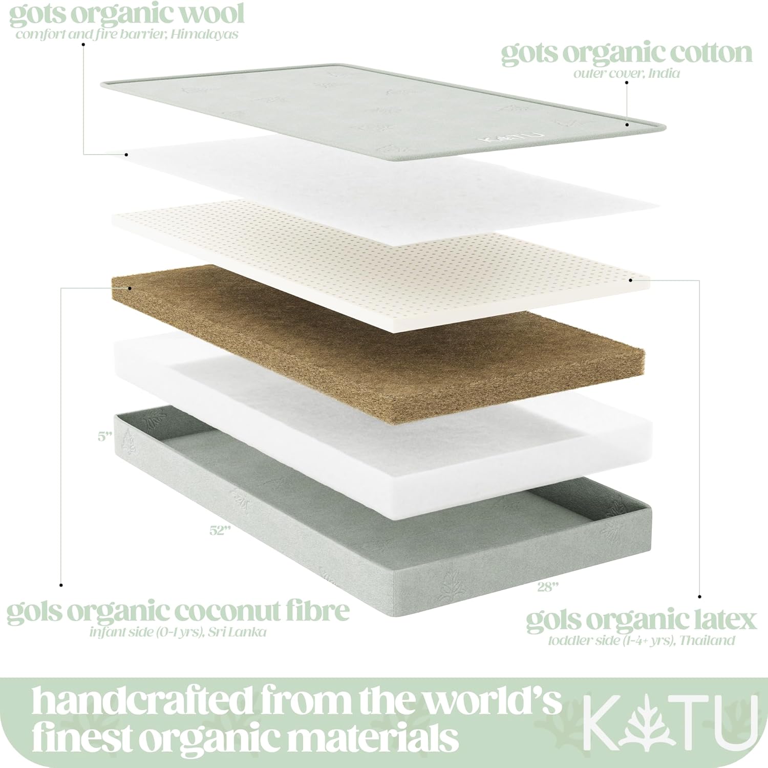 2 reviews for KATU 100% Organic Latex+Coconut 2-Stage Crib Mattress for Infant/Newborn/Toddler Safe Non-Toxic Hypoallergenic Breathable GOTS GOLS w