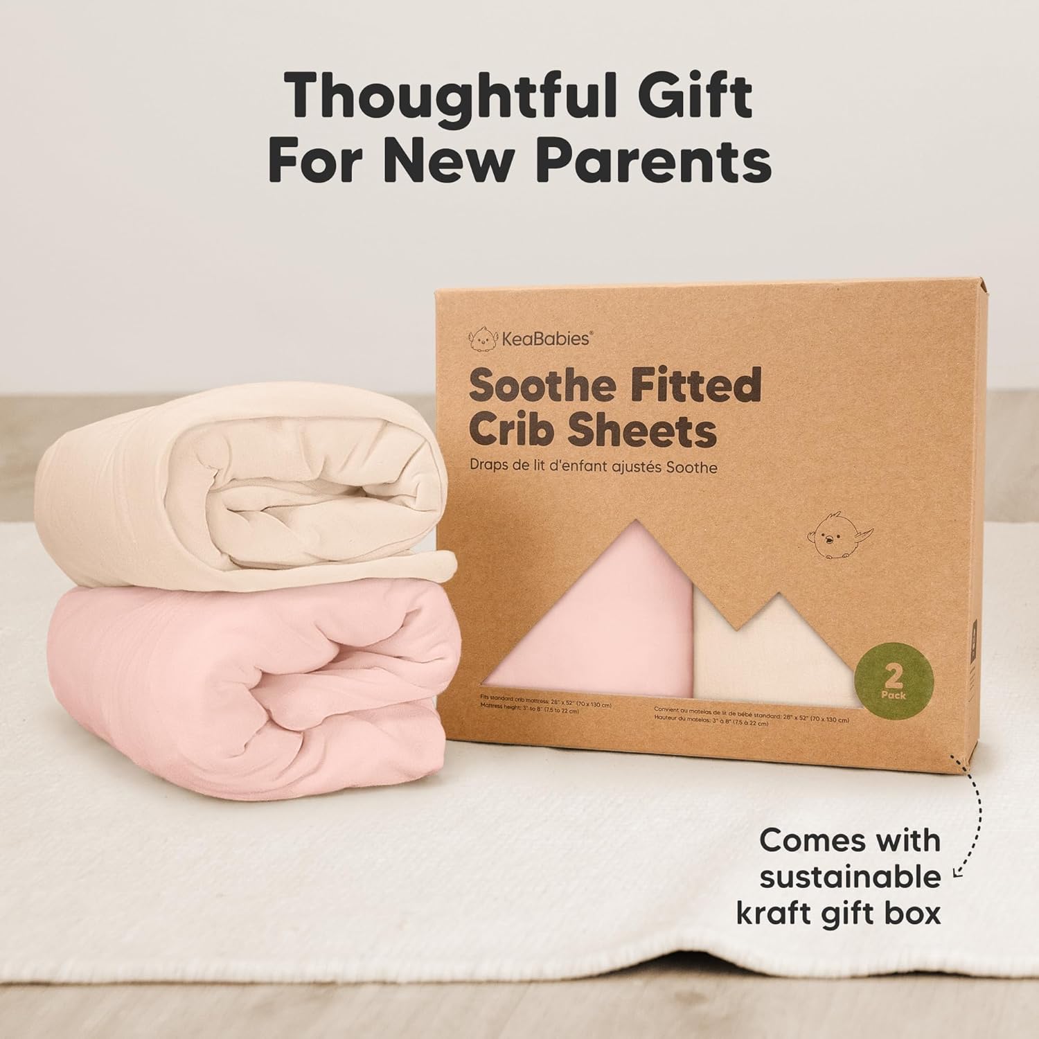 2-Pack Fitted Crib Sheets – Each KeaBabies Soothe Baby Crib Sheets set comes with two organic crib sheets for boys and girls that can perfectly fit the standard nursery crib mattresses sized at 52” x 28” and height of 3” to 8”.