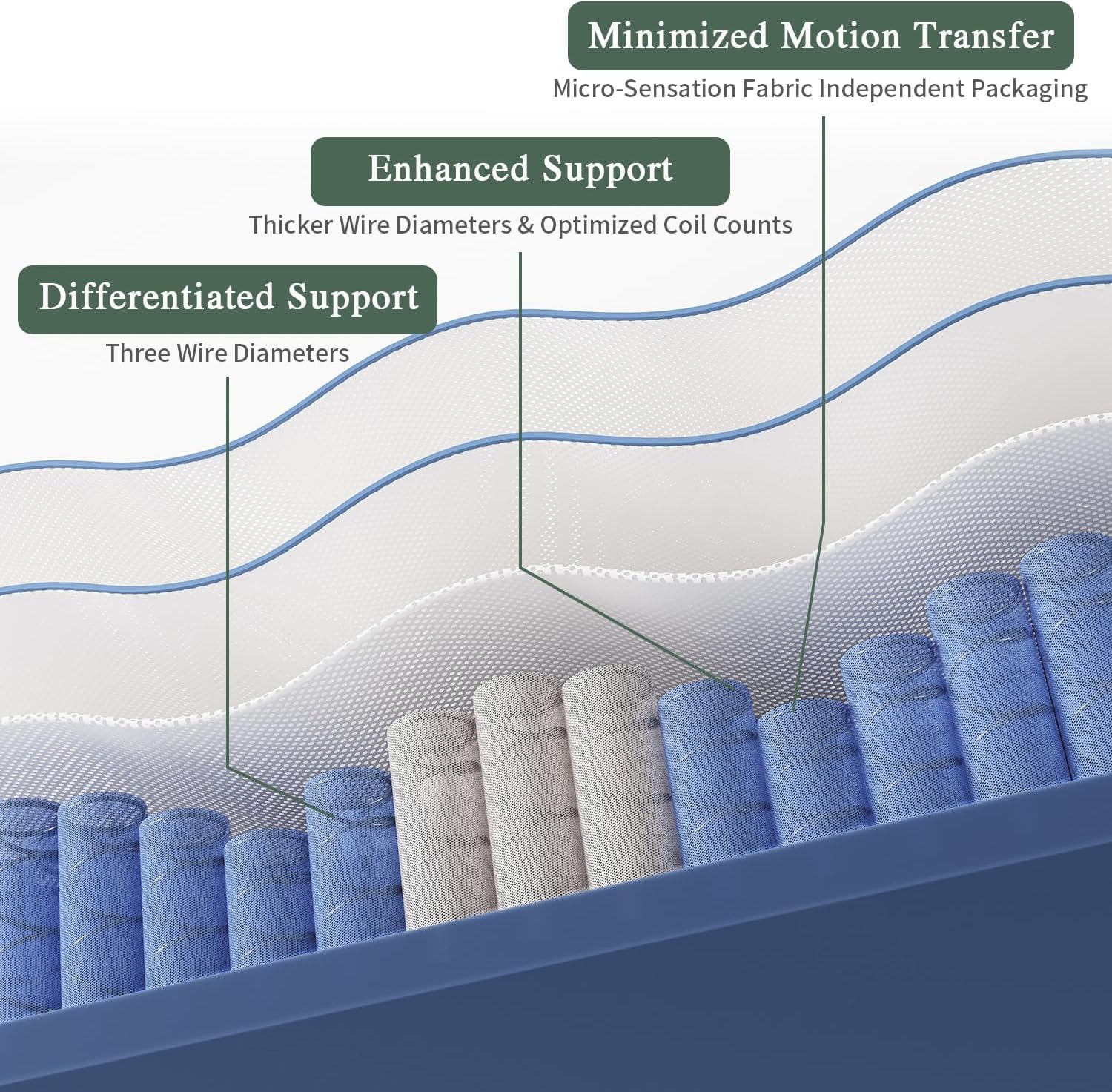 Experience Superior Comfort and Support: Our mattress king features a unique blend of gel memory foam and individual innerspring coils, providing medium-firm support and exceptional pressure relief. This combination ensures optimal spinal alignment and comfort, making it perfect for a restful night’s sleep. The memory foam conforms to your body’s shape, offering personalized support for all sleeping positions.