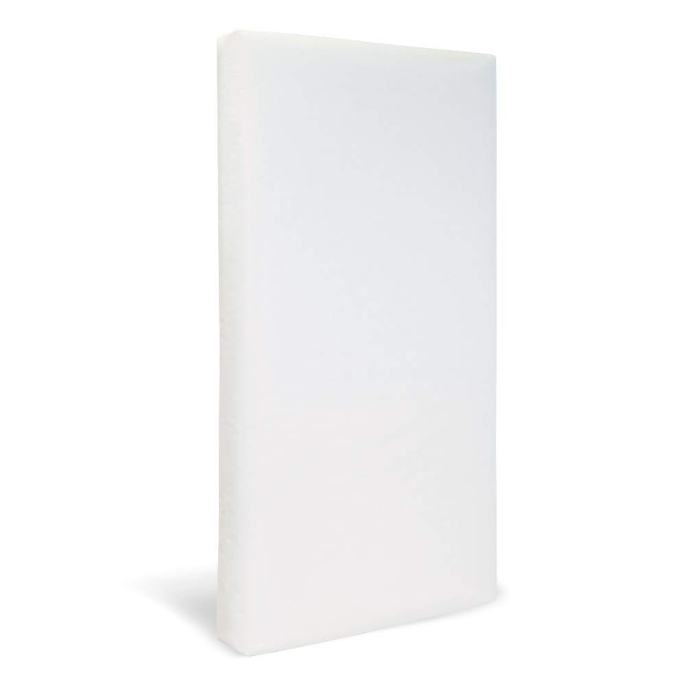 I was looking for an all natural chemical free mattress for my baby. This was definitely a great choice. Firm on one side for infants and other side is a little softer for a toddler. No chemical smell what so ever when unwrapped. Very lightweight for easy handling. The mattress also fit perfect in my Babi Italia Asheville crib that I purchase at Baby R Us. Great price for my peace of mind knowing my little one wont be exposed to toxins. I would definitely recommend this product if your looking for a non-toxic mattress ~ Thank you Lullaby Earth