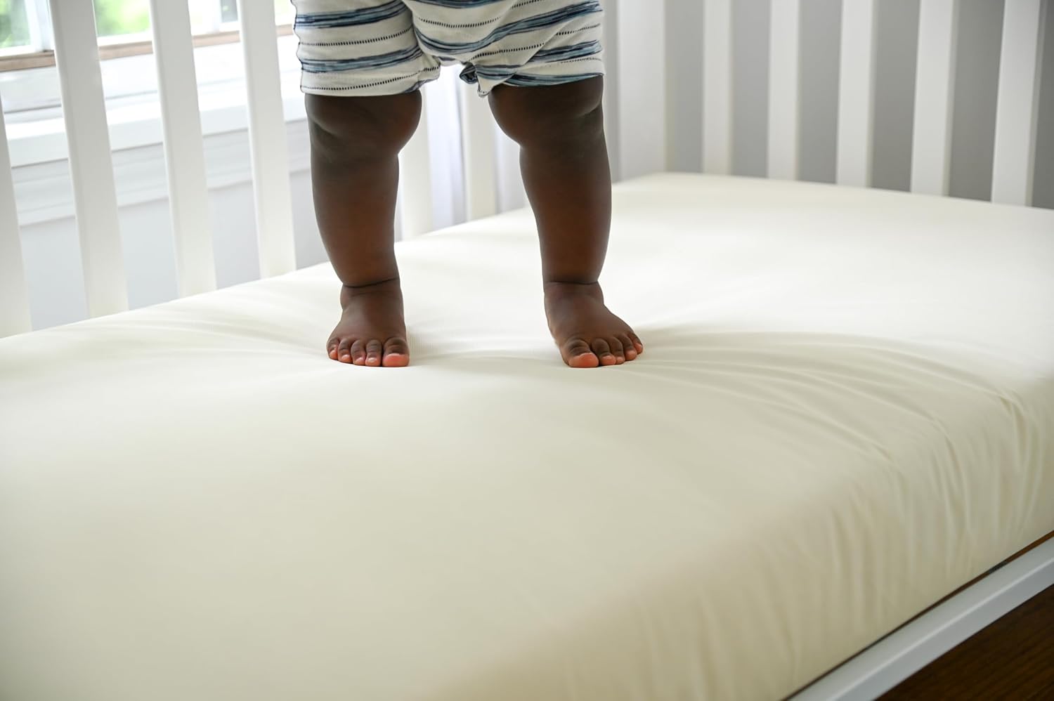 Many crib mattresses have soft or flimsy edges. Lullaby Earth mattresses have reinforced edges, which help to keep your baby’s arms and legs from getting caught between the mattress and the crib. They also stand up to bouncy toddlers who stand or jump at the edge of their bed.