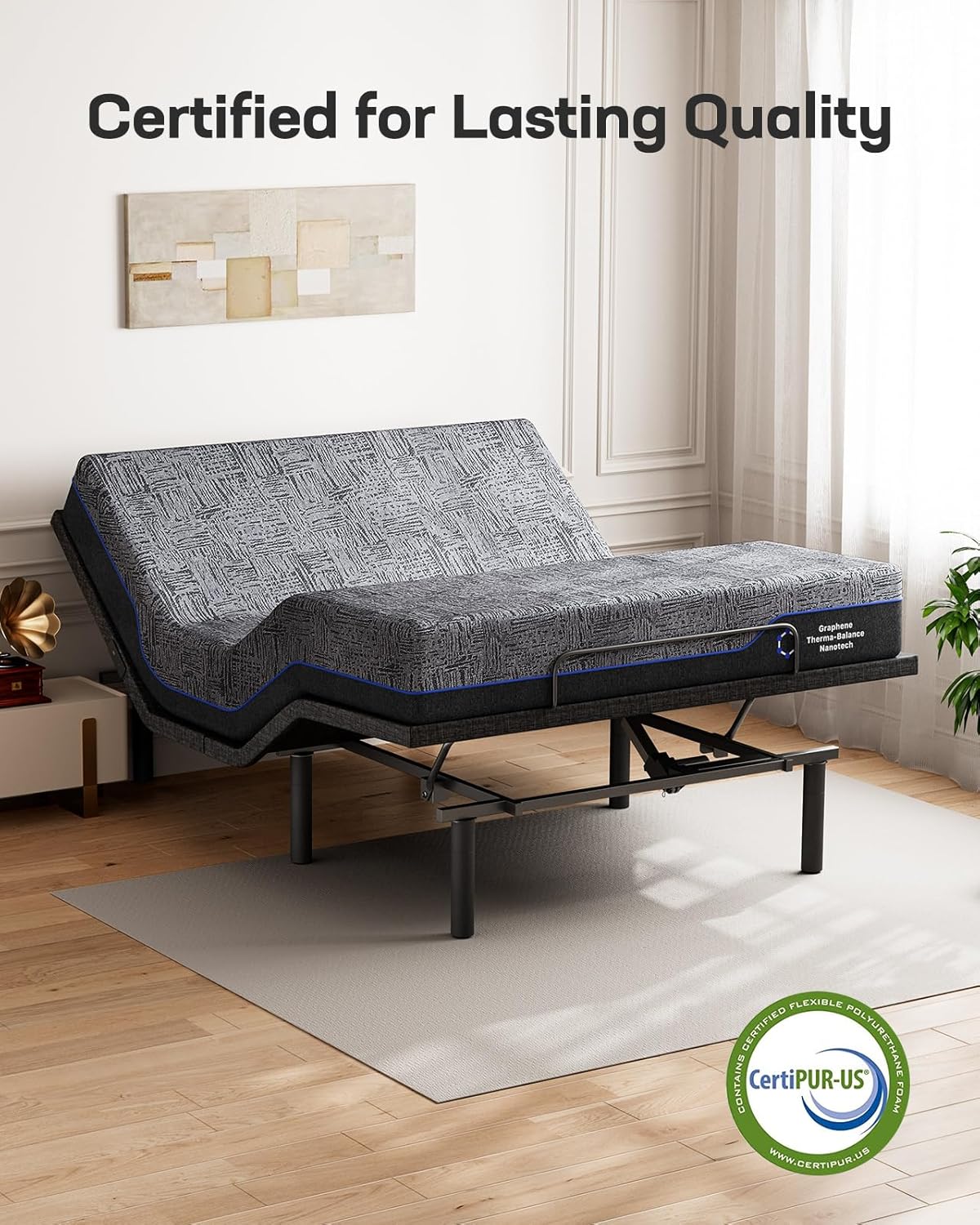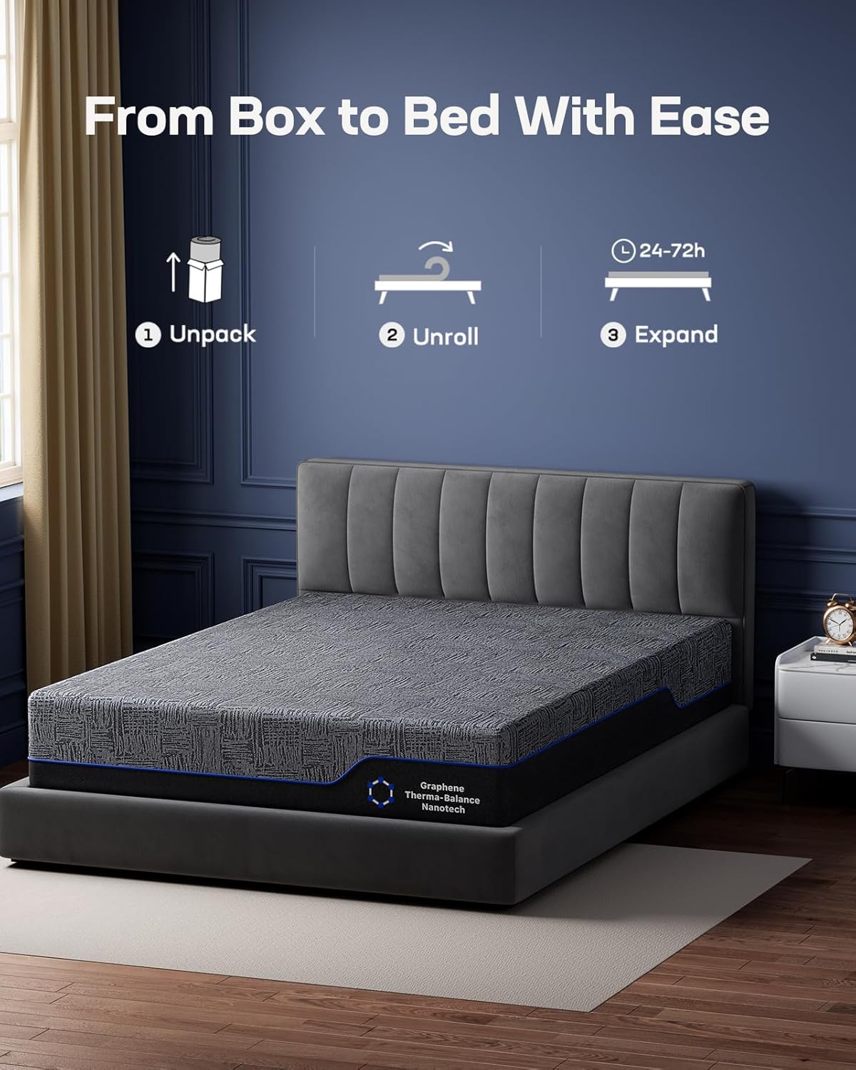 Graphene Fabric for Cool Sleep: The outer cover of this king mattress is made of innovative graphene fabric, known for its excellent thermal conductivity. It efficiently disperses body heat across the surface of this king size mattress, reducing hot spots and creating a cooler, more consistent sleep environment throughout the night.