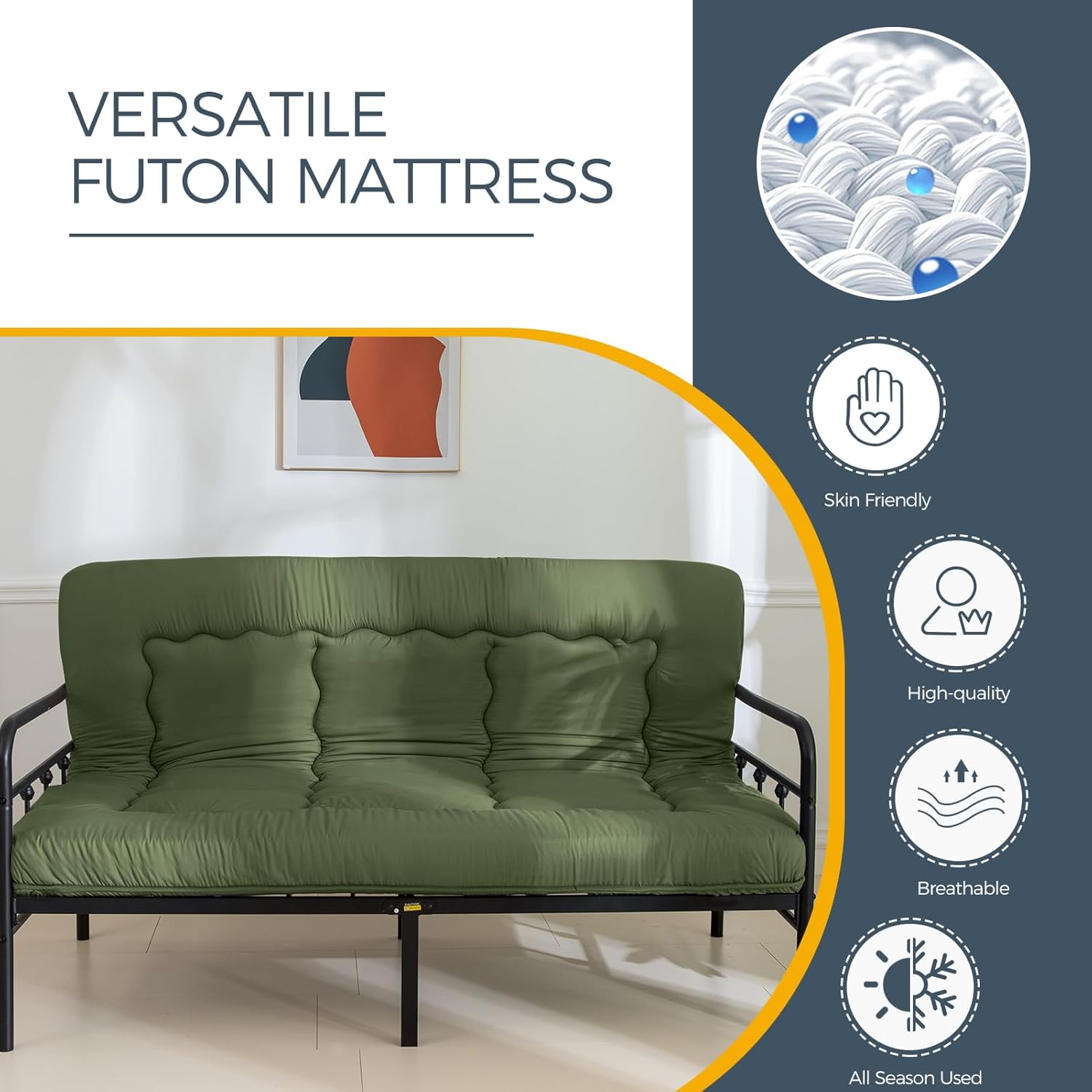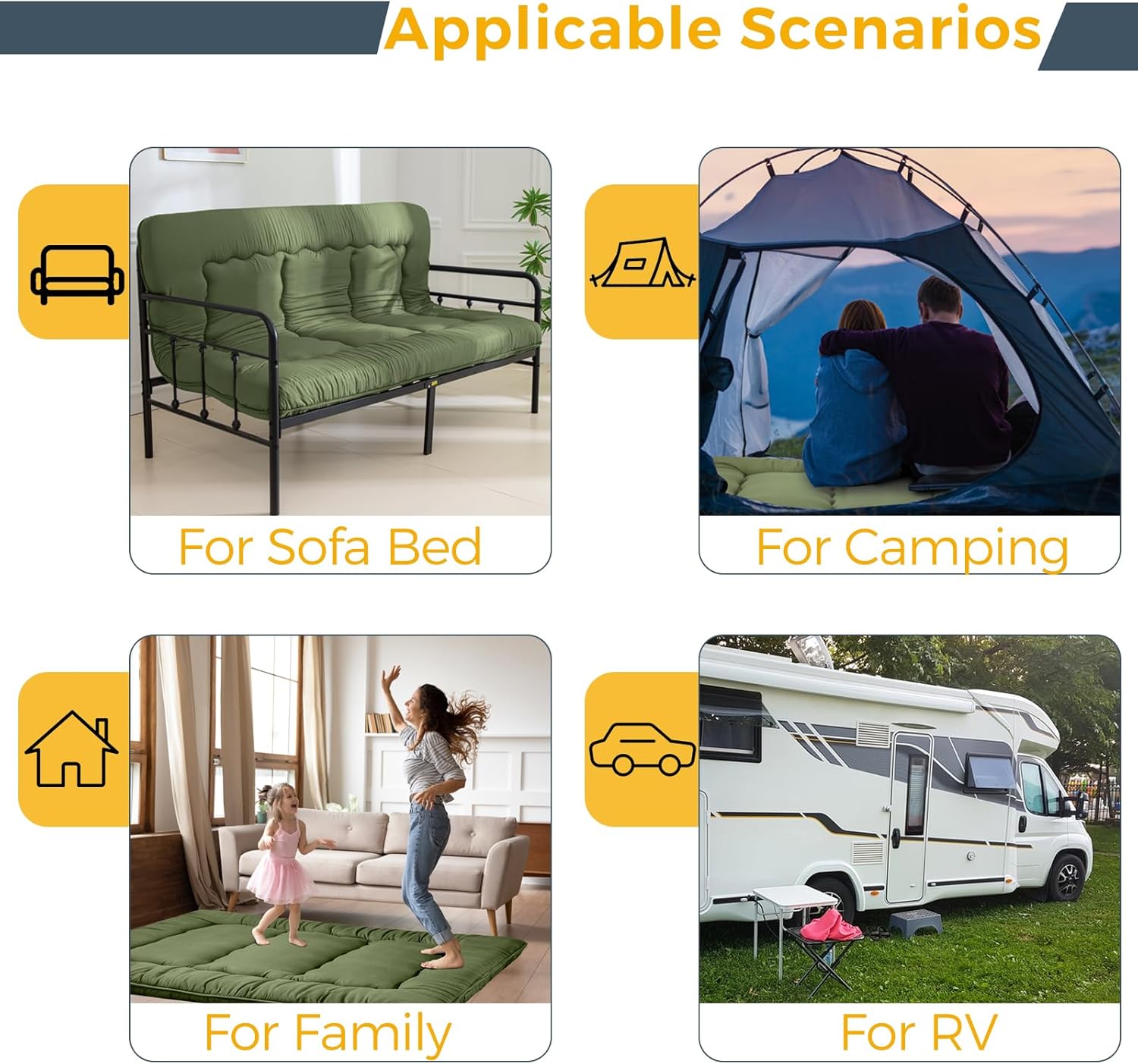 Our products embody Versatility – floor mattress, thick futon, sofa couch, bean bag chair, living room chair. Designed with our customers in mind, whether you seek style, home comfort, sound sleep, or outdoor adventures.